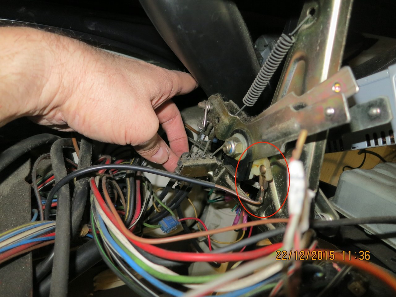 Suche nach braun/weissem Kabel am Hebelwerk dessen anderes Ende in den 8fach Stecker geht unterm Armaturenbrett zum Kabelstrang nach hinten.