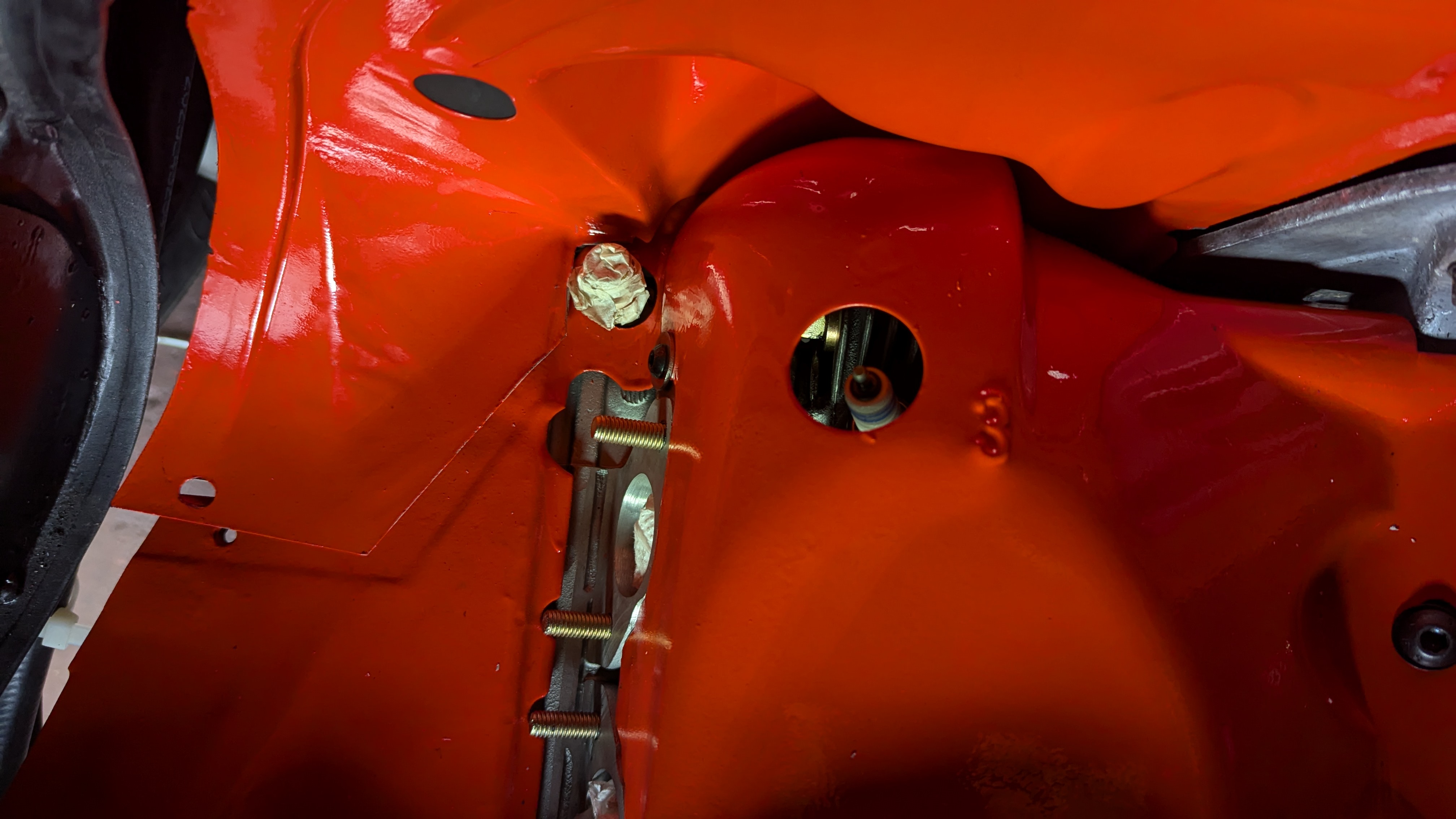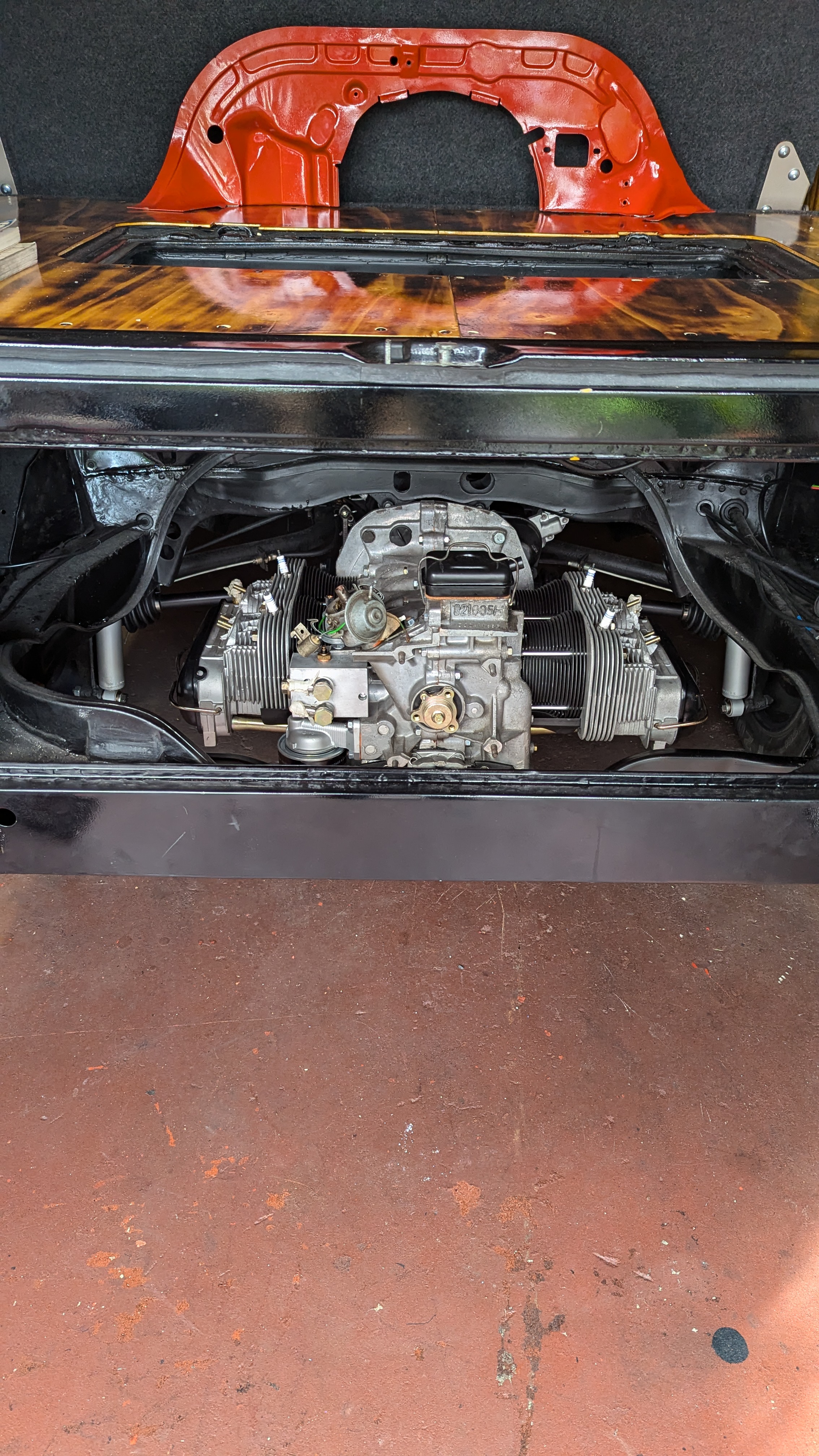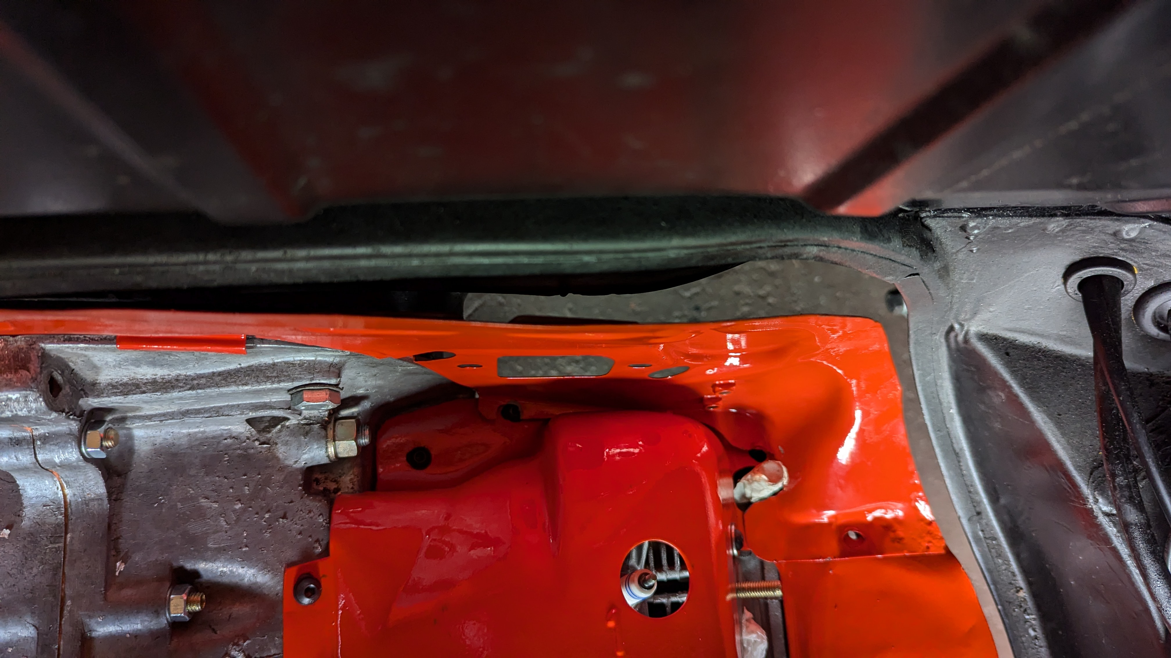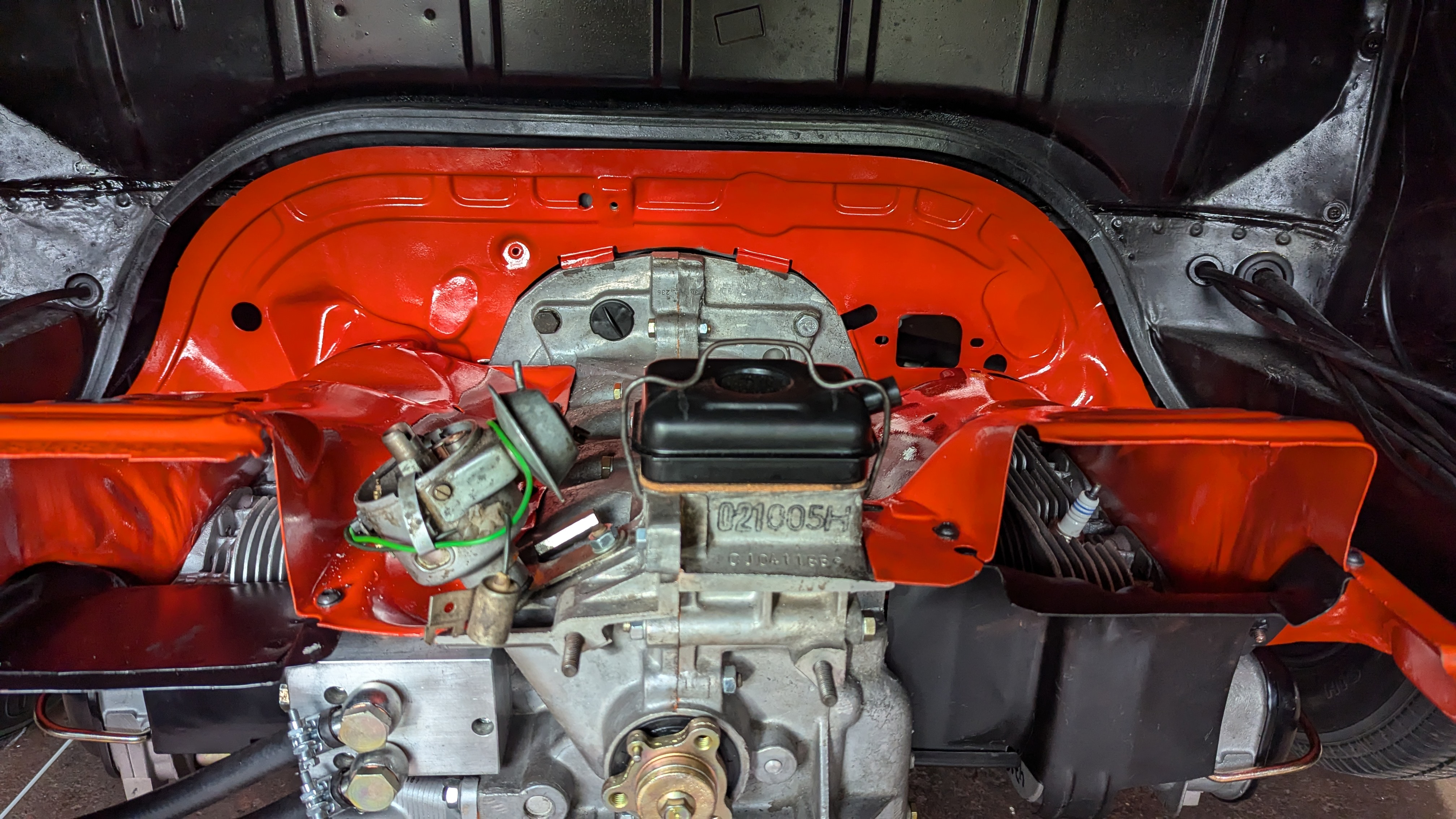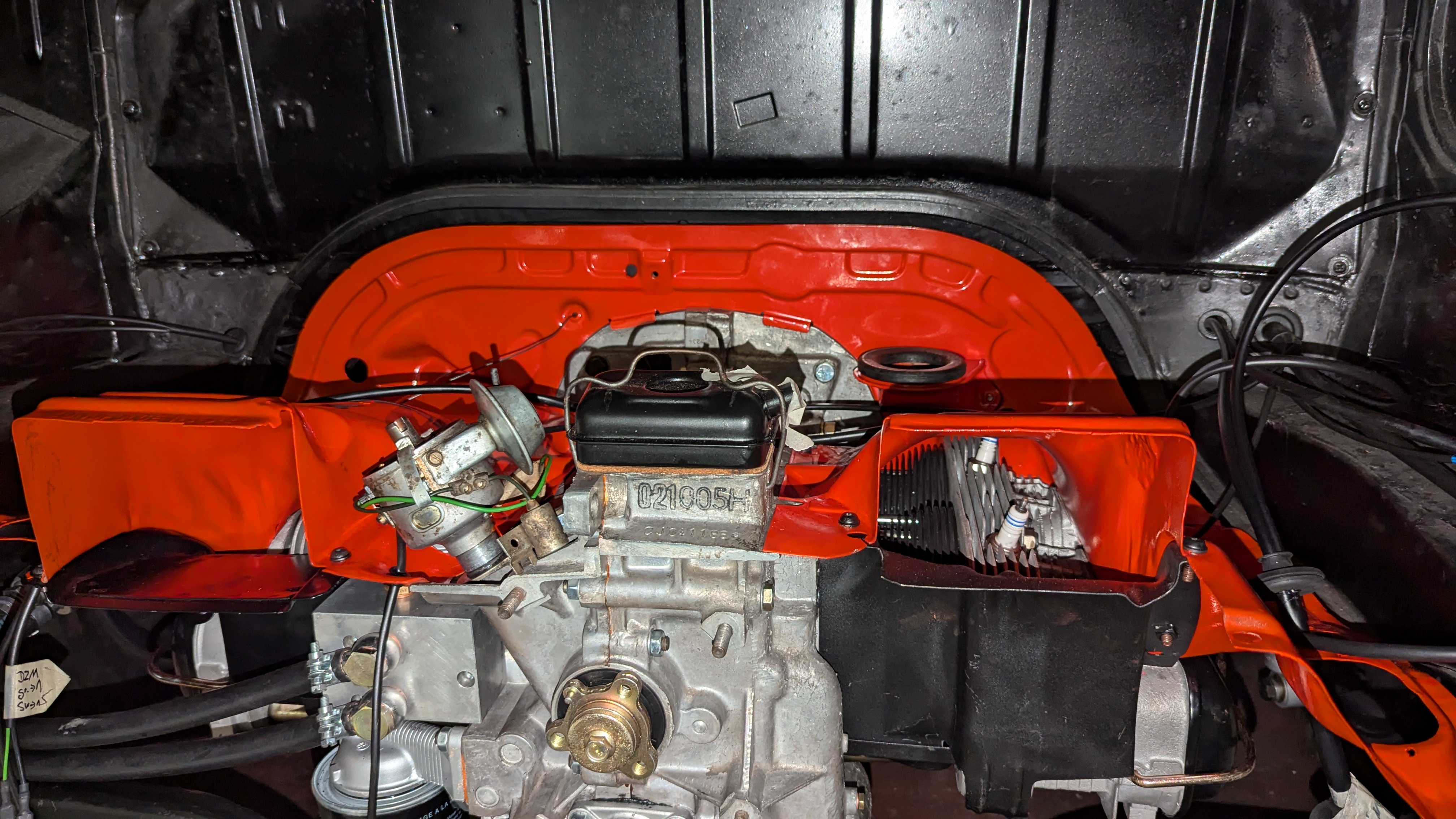 Allerdings habe ich die Motortraverse nochmal abgeschraubt um das Öleinfüllrohr besser dran zu bekommen zumal ich vorher den Innenteil von Gebläsekasten eingebaut hatte.