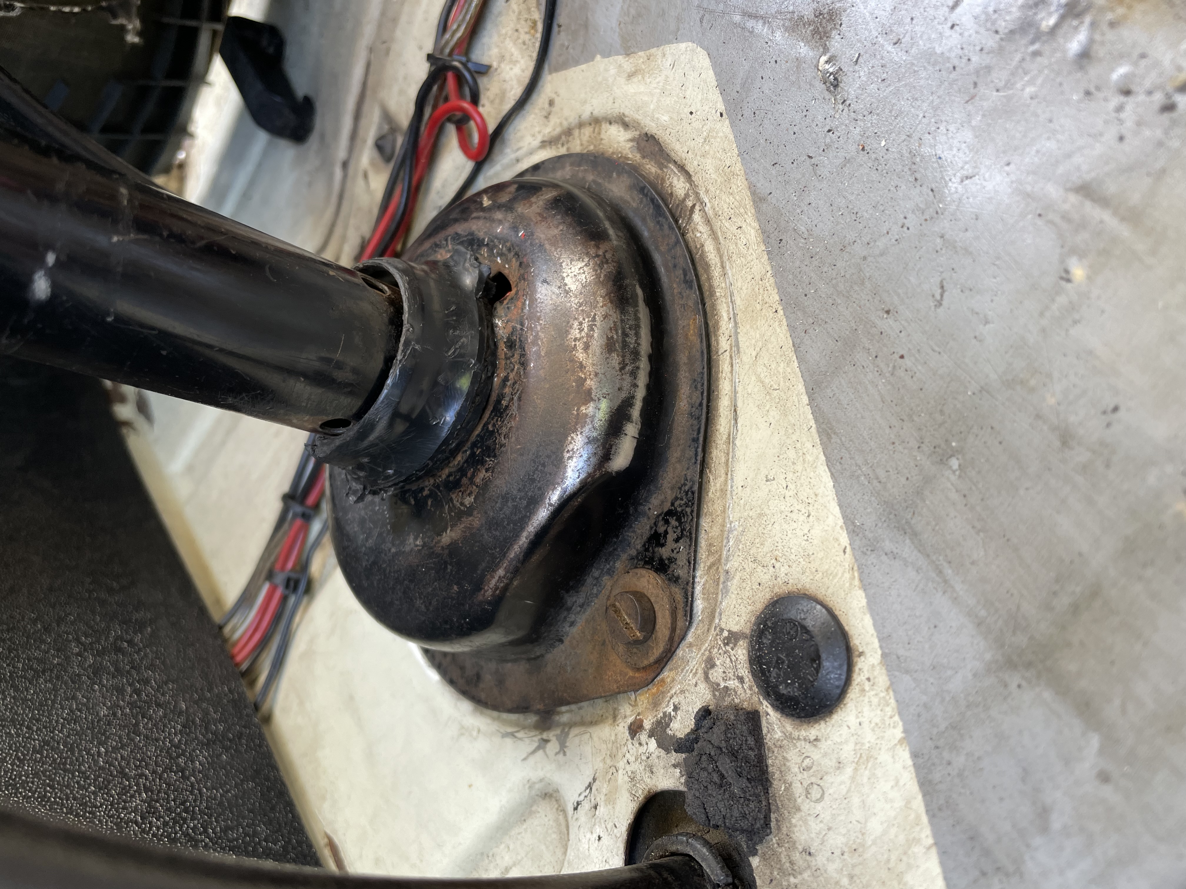- die Lenksäule hat recht viel Radialspiel an der oberen Halterung