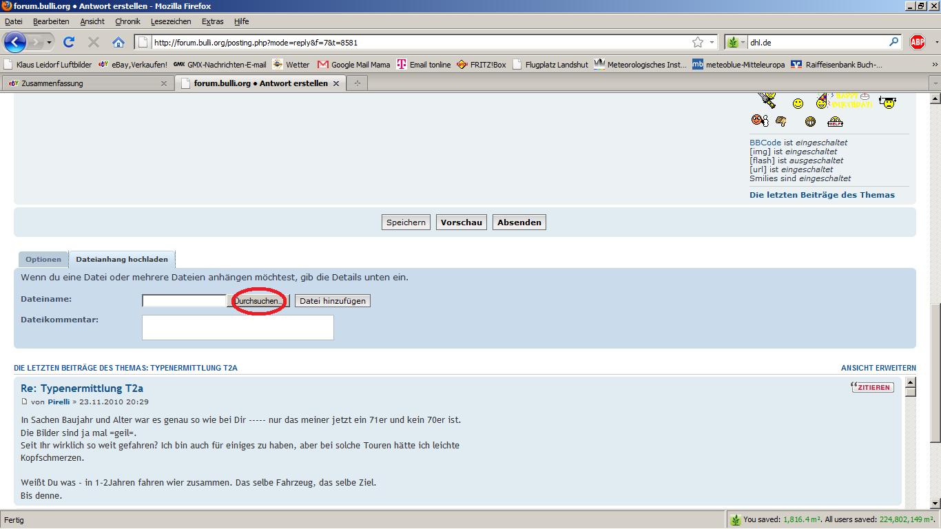 da es mich ja auch sehr interresiert, wie Dein Bulli aussieht :dafür: hier mal eine kurze Beschreibung zum Bilder hochladen also: