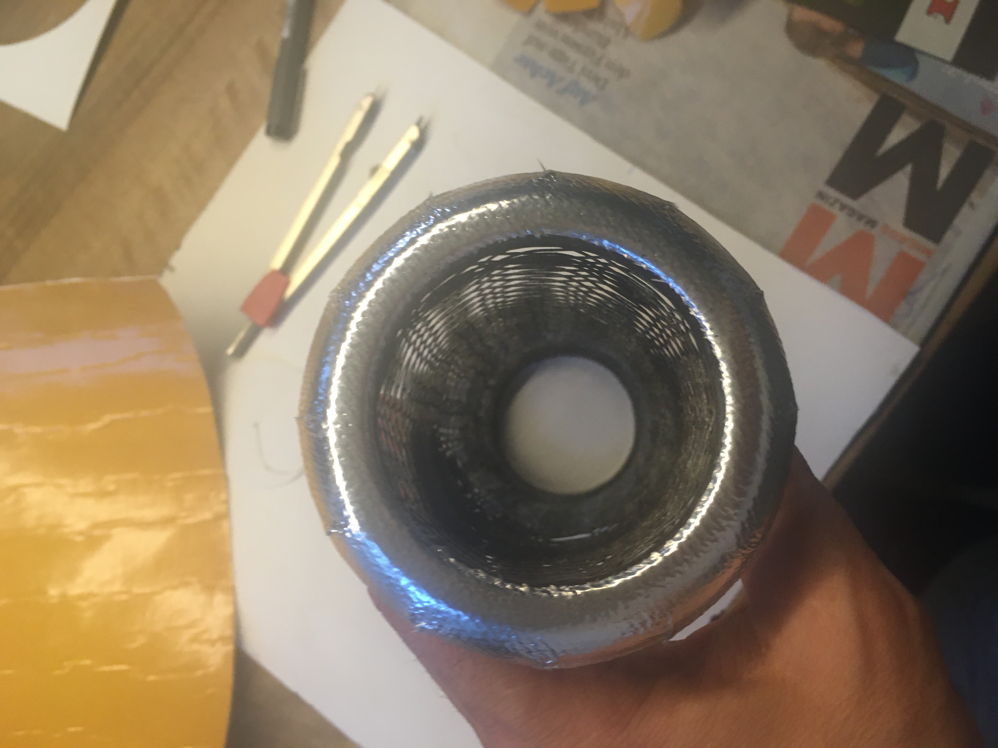 Ersatz für stirnseitige (Asbest-) Dichtung: 1mm selbstklebende Hitzeschutzfolie, zu einem Ring zugeschnitten (Aussen 12,5mm, Innen 60mm), eingeschnitten für Anpassung an Innenringe: