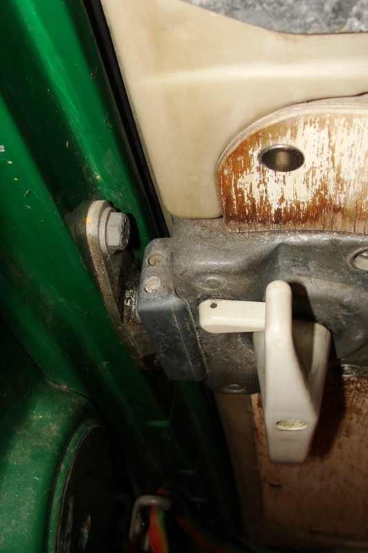 vielen Dank für deine Fotos, wir werden noch einmal versuchen die Tür anders ein zu stellen vielleicht liegt sie zu weit an und kommt deshalb nicht nah genug ans Schloss, Rollen und Führungen sehen normal nach Bulli-Original aus, nix selbstgedengeltes