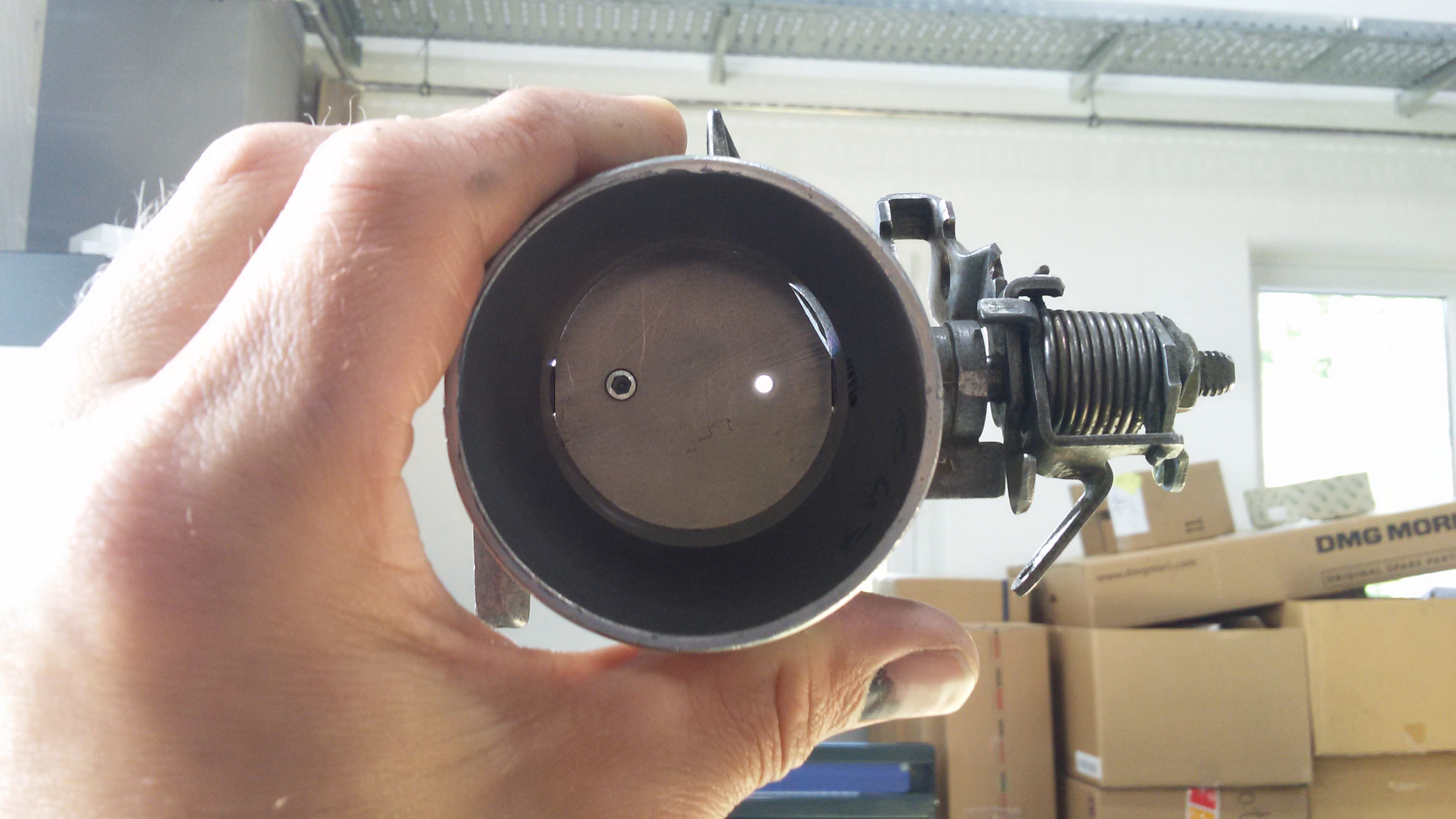 Wie dicht muss die Drosselklappe im geschlossenen Zustand denn sein bzw. welcher Verschleiß ist noch zulässig? Im Bereich der kleinen Unterduckbohrung ist die Klappe bei mir geschlossen. Allerdings verschließt der Rand der Klappe die Bohrung zu ca. 50%. Ich habe mal ein paar Bilder von meiner Klappe angehängt.