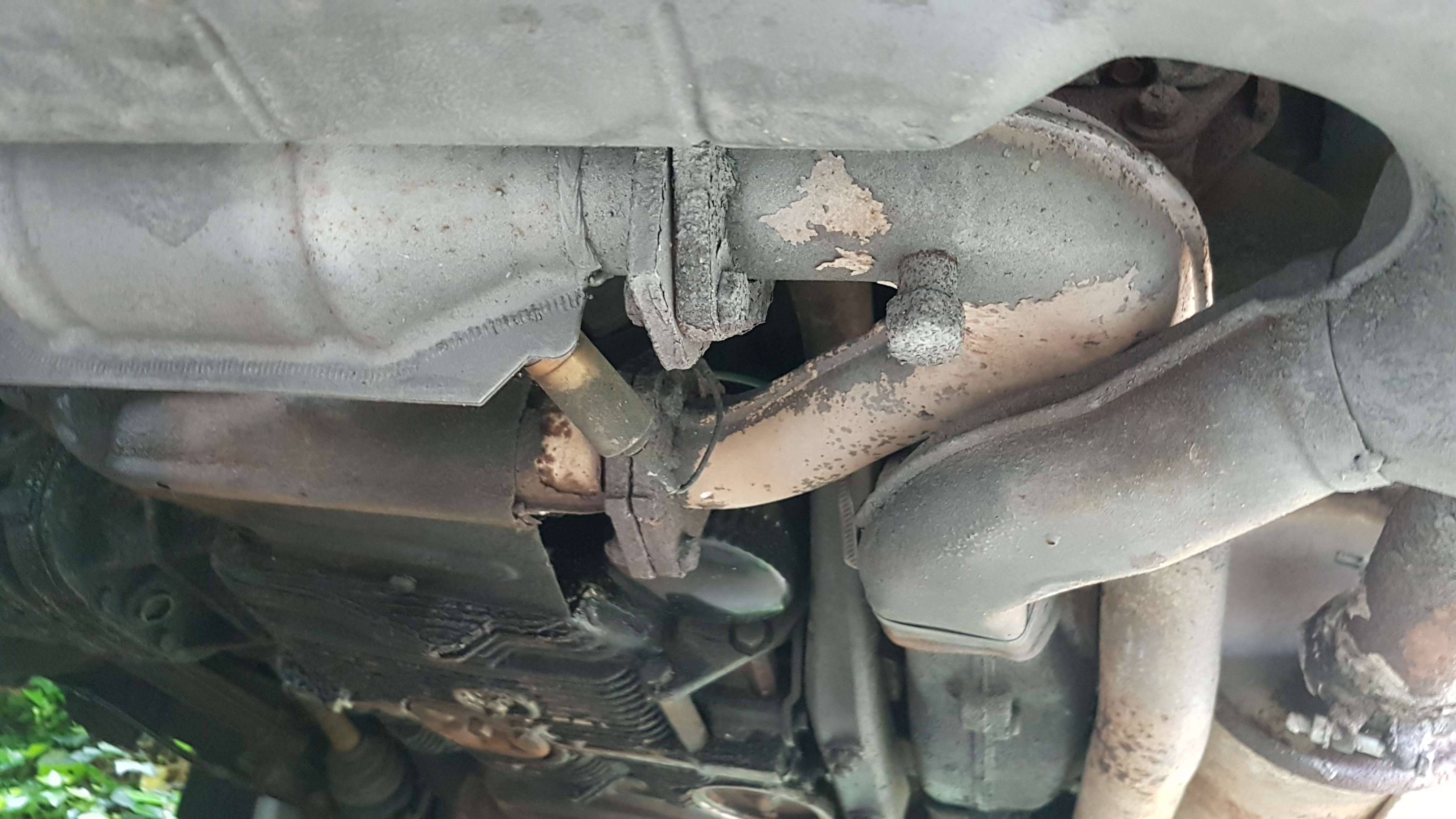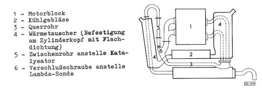 Welche Ausführung von Motor ich habe: ich gehe von G-Kat Kalifornien aus, jedenfalls werden die Abgase von der Beifahrerseite mit denen der Fahrerseite zusammengebracht, gehen durch den fahrerseitigen Wärmetauscher und gelangen dann in den Schalldämpfer.