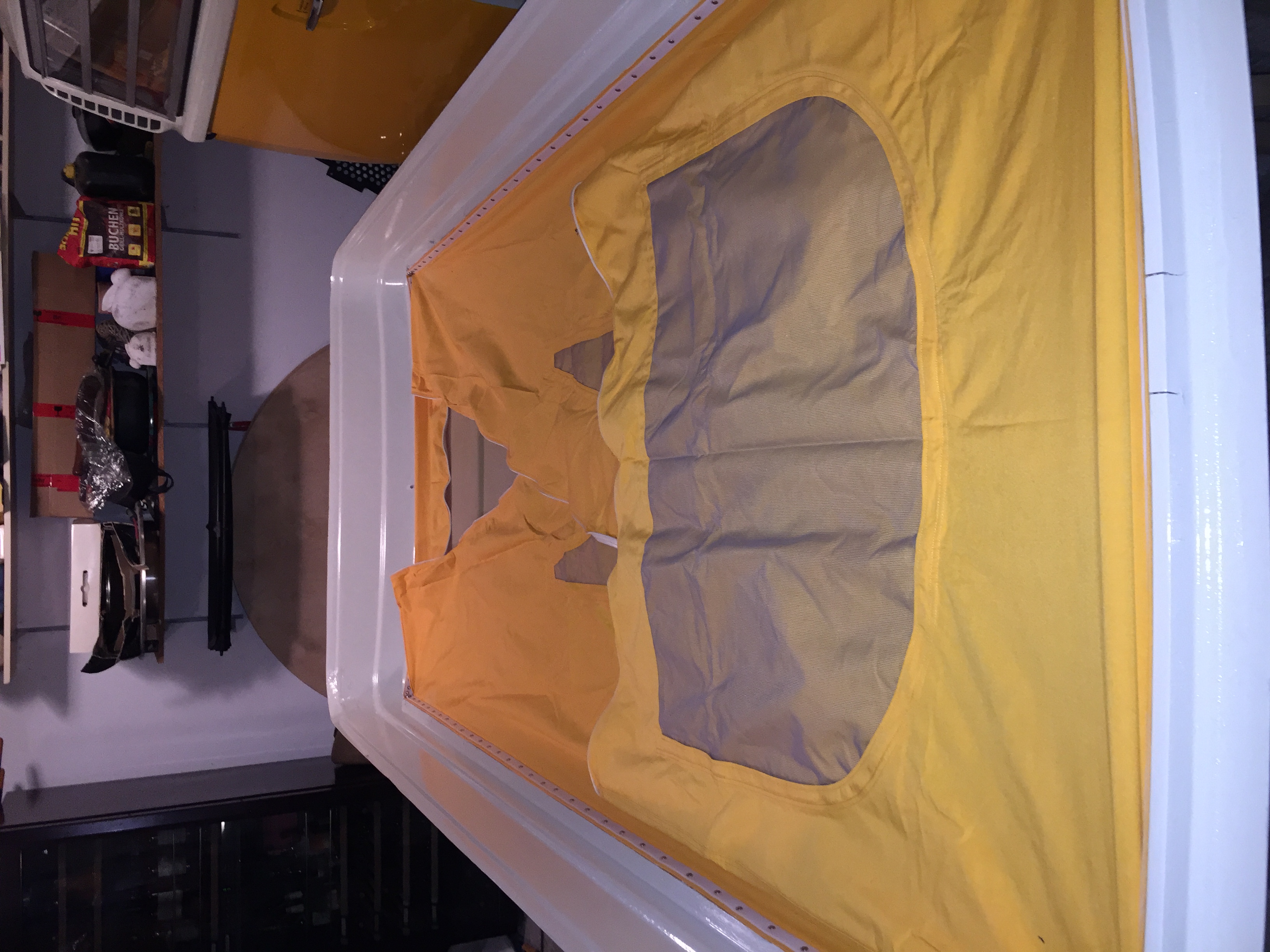Coole Sache Eric, den Stoff zu montieren, ohne das Dach zu demontieren.