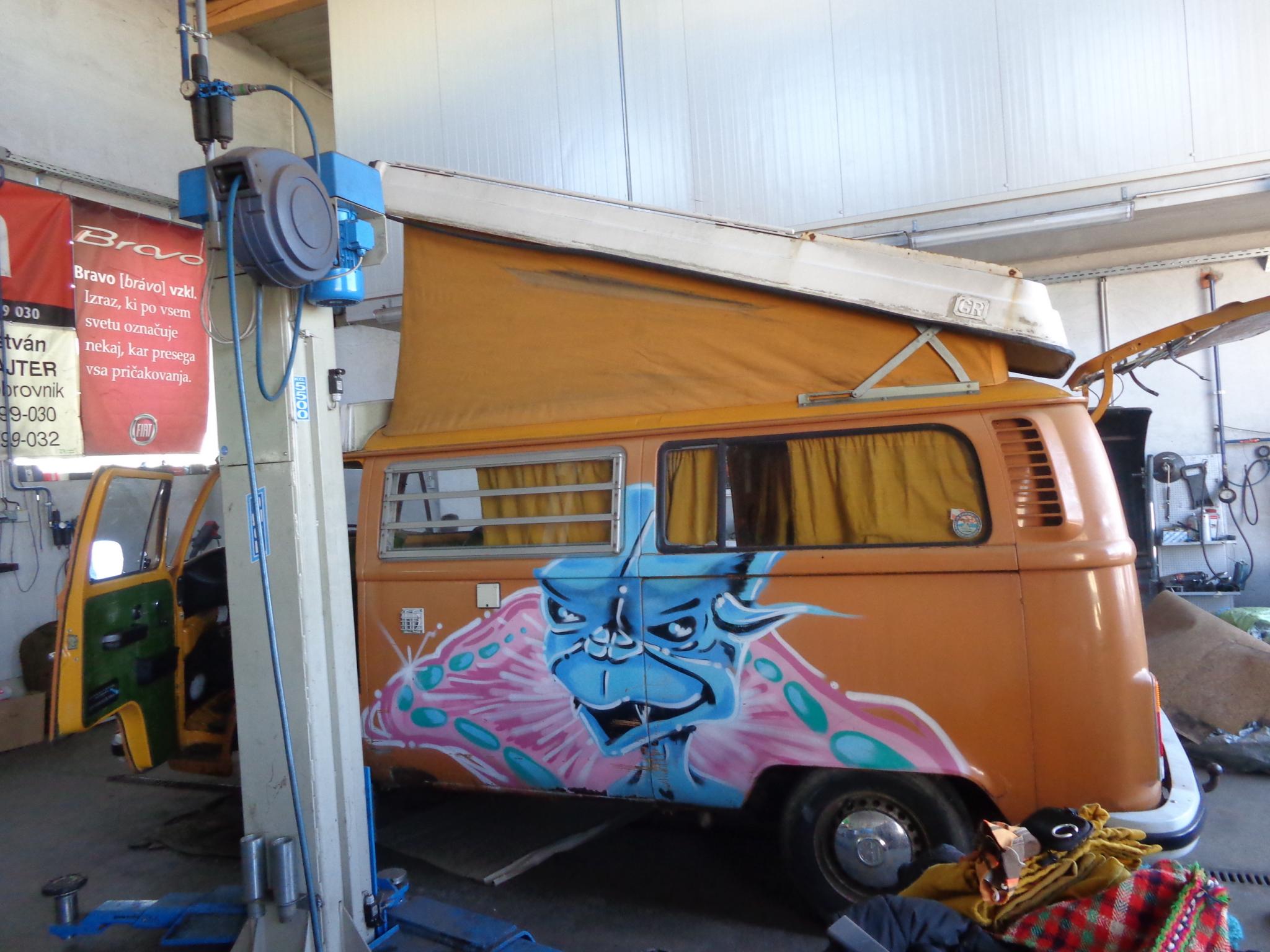 Ja, Du hast richtig gelesen. Ich werde meinen Bulli erst Ende März wieder besuchen können. Liebend gerne würde ich den Werkstattleiter bitten, die einzelnen Arbeitsschritte am Bulli zu fotografieren. Aber das Auto steht nicht in Deutschland, sondern in Slowenien, direkt hinter der ungarischen Grenze und dort würde man mich nach Äußerung eines solchen Wunsches freundlich anlächeln und augenzwinkernd nicken (Frauen sollte man nicht allzu ernst nehmen, die gehören in die Küche). Allerdings habe ich einen befreundeten KFZ Mechaniker beauftragt, das Ganze im Auge zu behalten und auf ihn kann ich mich absolut verlassen.