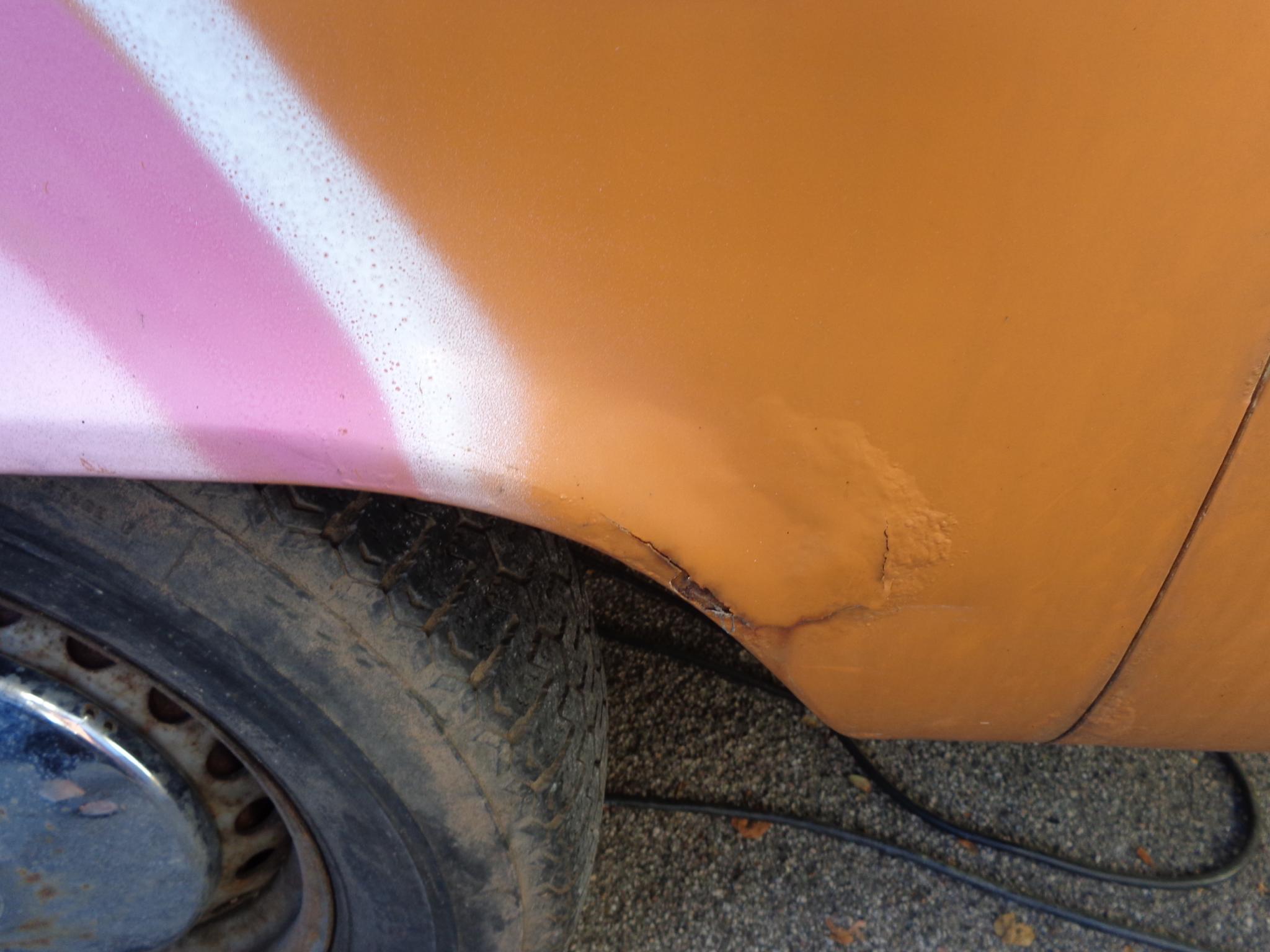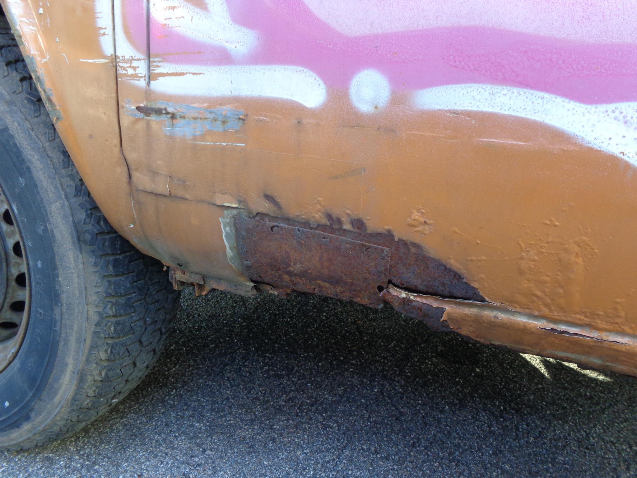 Hier nochmal ein Foto von der Seite, auf der der Alien draufgemalt ist, <br />das ist innen die Stelle, an der die Schweißpunkte zu sehen sind. Meiner<br />Meinung nach die übelste Stelle am Auto
