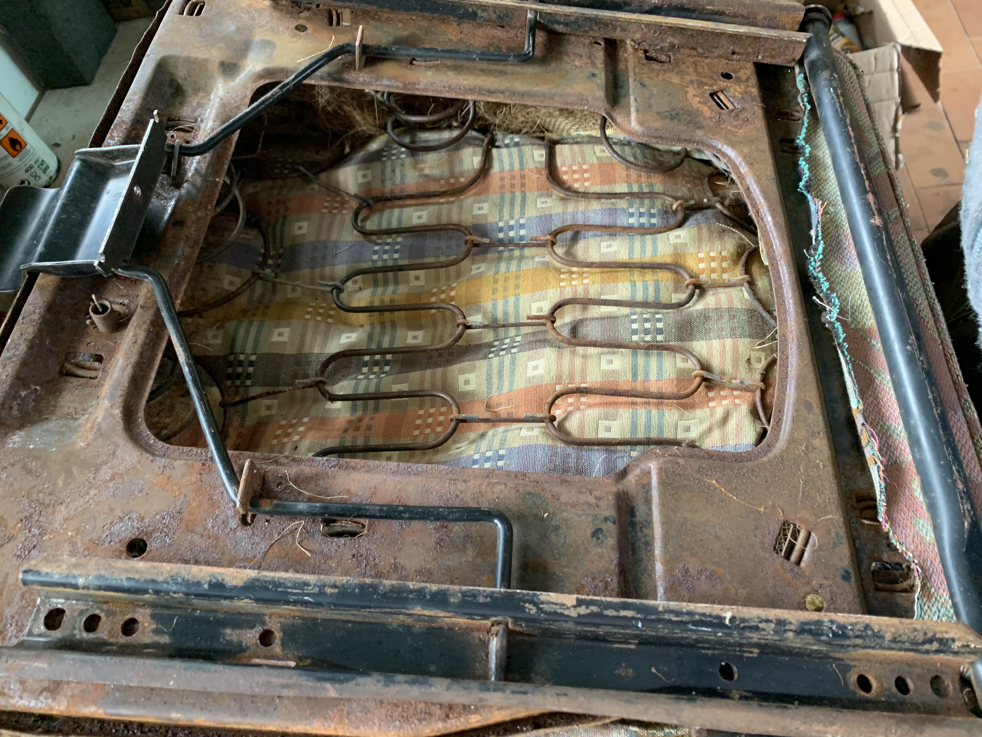 Gebrochene Federn, gebrochenes Gestänge, komplett verrostet, Polsterung verschlissen: ich würde mich bei dieser Diagnose eher nach einer Alternative umsehen. Die werden zwar auch nicht wie neu sein, aber vielleicht mit deutlich weniger Aufwand in einen guten Zustand zu bringen sein.