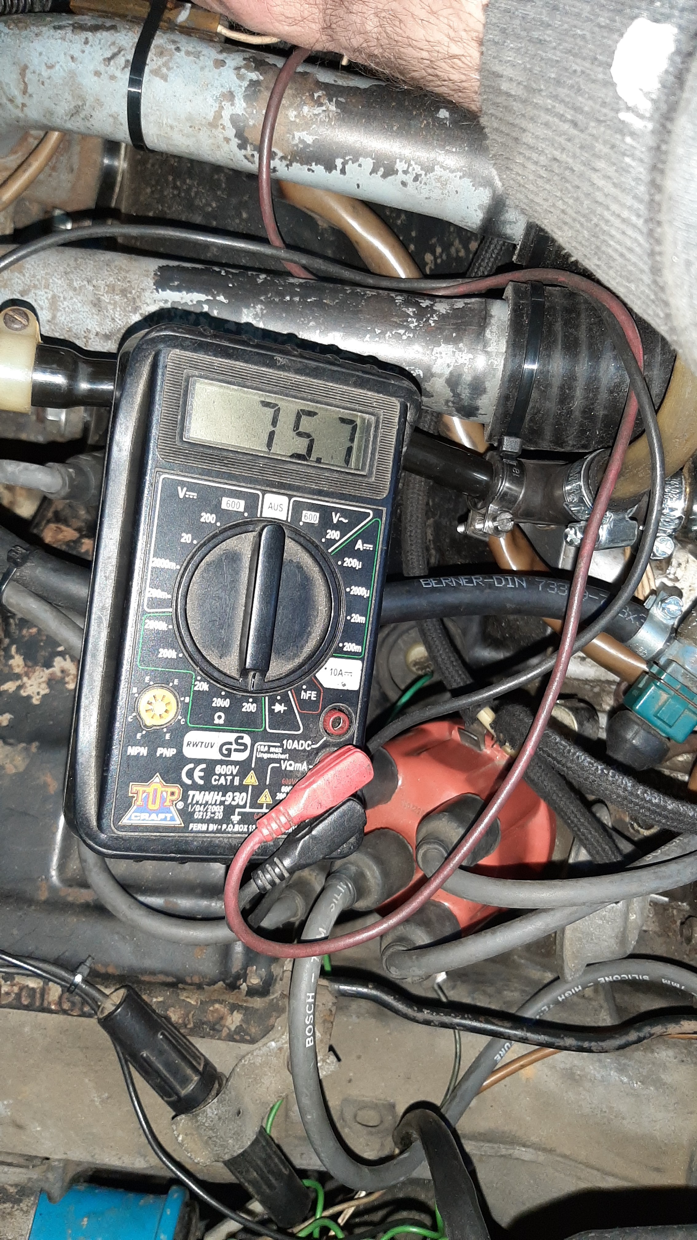 Den Sensor im Zylinderkopf habe ich auch noch mal gemessen. Laut Unterlagen soll er folgende Werte haben: