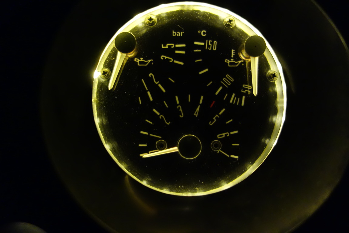 Damit ist der Drehzahlmesser recht gleichmäßig ausgeleuchtet.