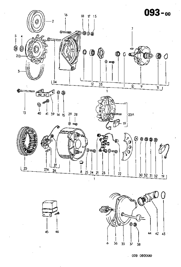 zu dem Typ 1 kann ich leider überhaupt nichts sagen. Da kenn ich mich nicht aus. Ich weiß allerdings dass du für den Betrieb des Drehstromgenerators den Spannungsregler, unten links abgebildet, brauchst. Ich hab in meinem eigenen einen Generator aus einem VW411/412 verbaut, der die Anschlüsse noch für den Diagnosestecker hat. Allerdings hab ich diese Kabel einfach ignoriert