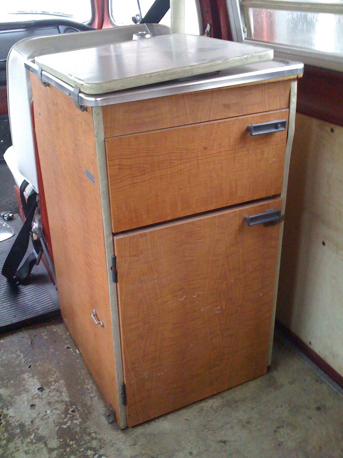 Das Furnier der Schränke ist der sogenannte Schweizer Birnbaum. Der passt genau genommen gar nicht so mit dem hellen Sperrholz der Seitenverkleidungen zusammen.
