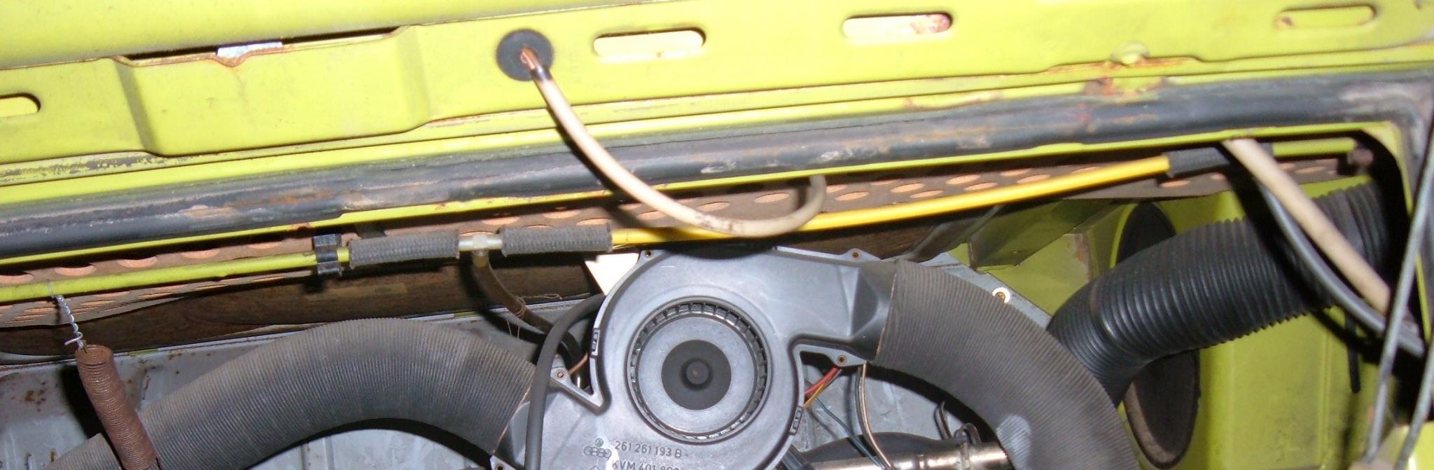 Aus den "Ohren" kommen echts und links zwei Metallrohre im Motorraum an.