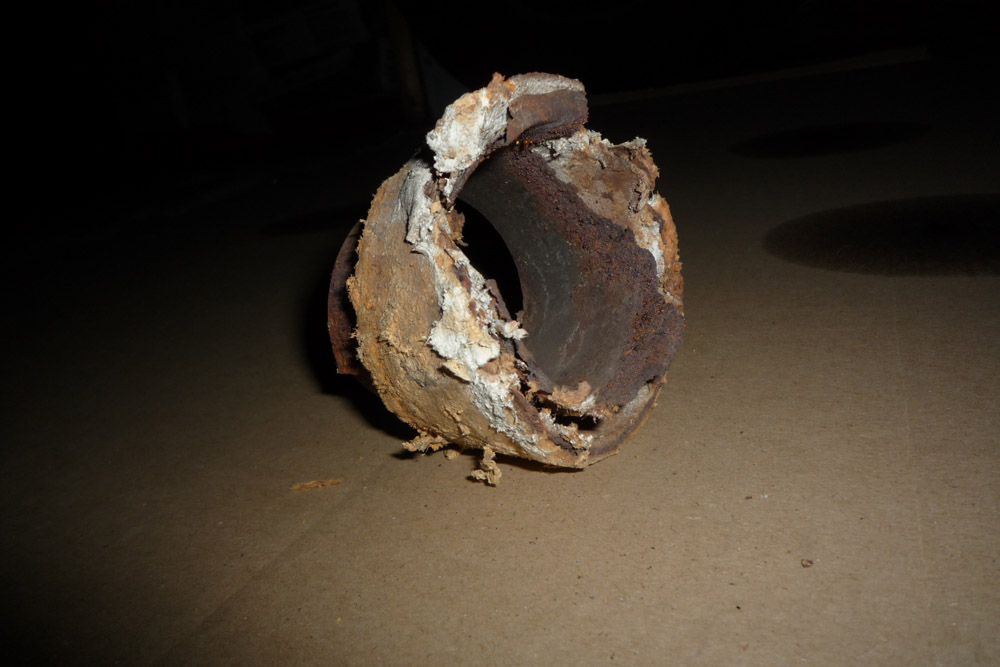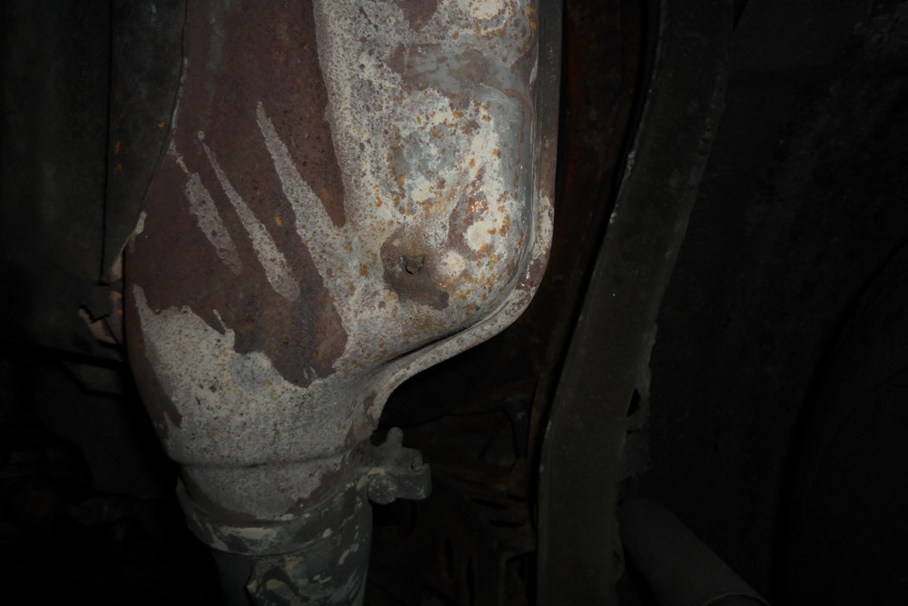 Auch nicht Serie ist das Loch auf dem zweiten Bild. Das Problem an den Wärmetauschern ist, daß sie regelmäßig von innen durchrosten. Grundsätzlich darf man die Hülle, die Du siehst, schweißen. Man kann es nur kaum schweißen, weil da der Rest des Bleches auch schon ganz dünn ist.