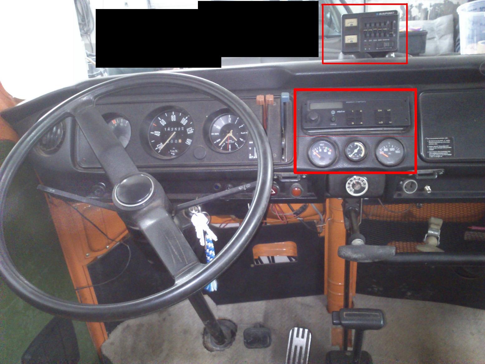 5. Auf dem nähsten Foto, stelle ich mir die Frage der Originalität, der fünf Geräte am Amaturenbrett.