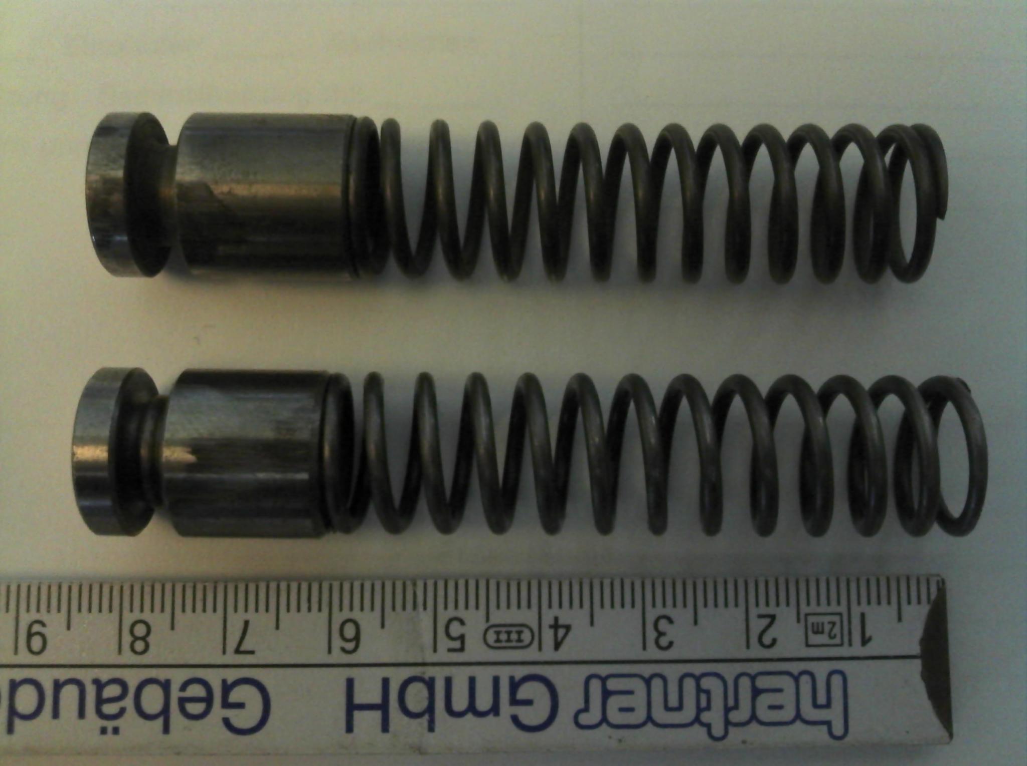 Nun bin ich gerade am Motor zusammenbauen und habe nun 2 Federn und 2 Kolben bei mir und habe keine Ahnung welche der beiden Federn und Kolben in das CU-Motorgehäuse passt bzw. eingebaut werden muss.