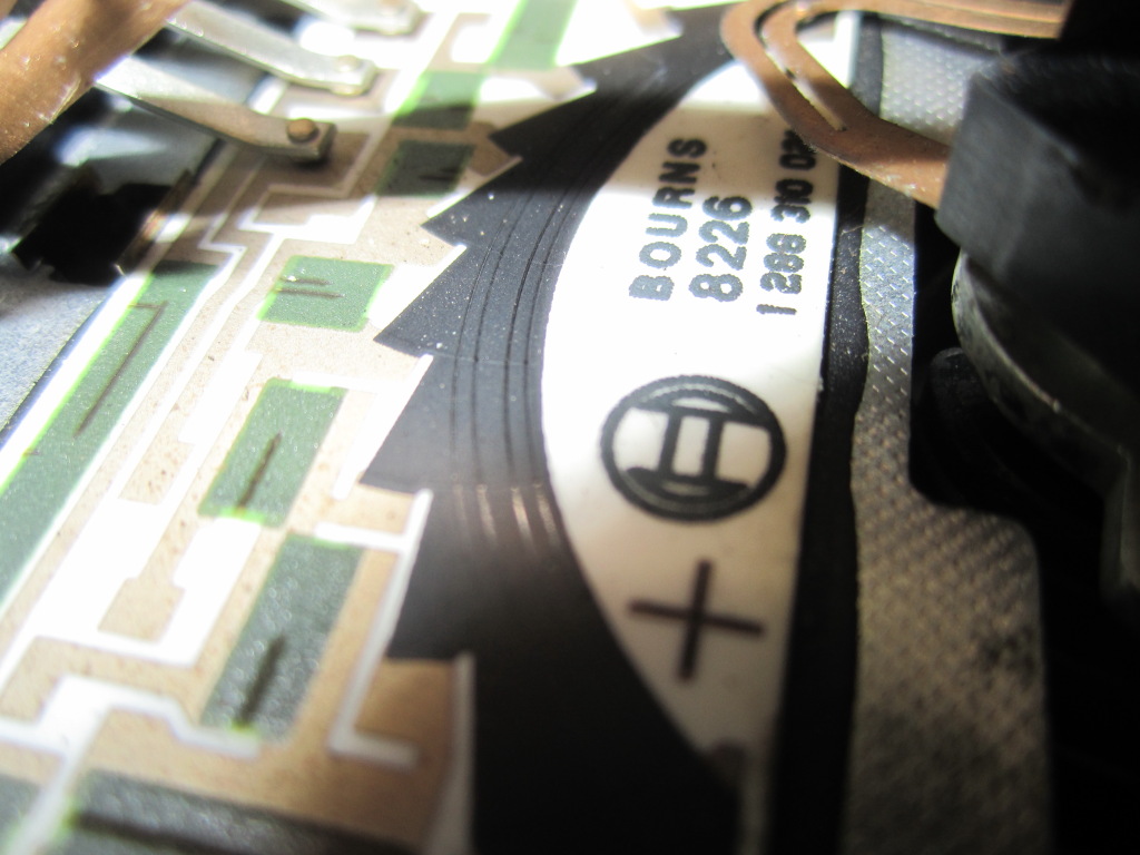 Die Platine auf der die Schleifkontakte laufen, ist noch die originale. Aber die Leiterbahn war wohl schon etwas abgenutzt, also haben die einfach die Platine versetzt, damit der Schleifer an einer neuen Stelle auf der Platine läuft. Deutlich zu erkennen an den doppelten Schleifspuren: