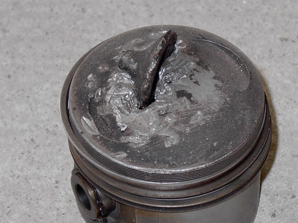 So sieht ein Kolben nach einem Ventilabriss aus. Ist zwar ein Kolnem von meiner BMW, ist aber auch ein Luftgekühlter Boxer