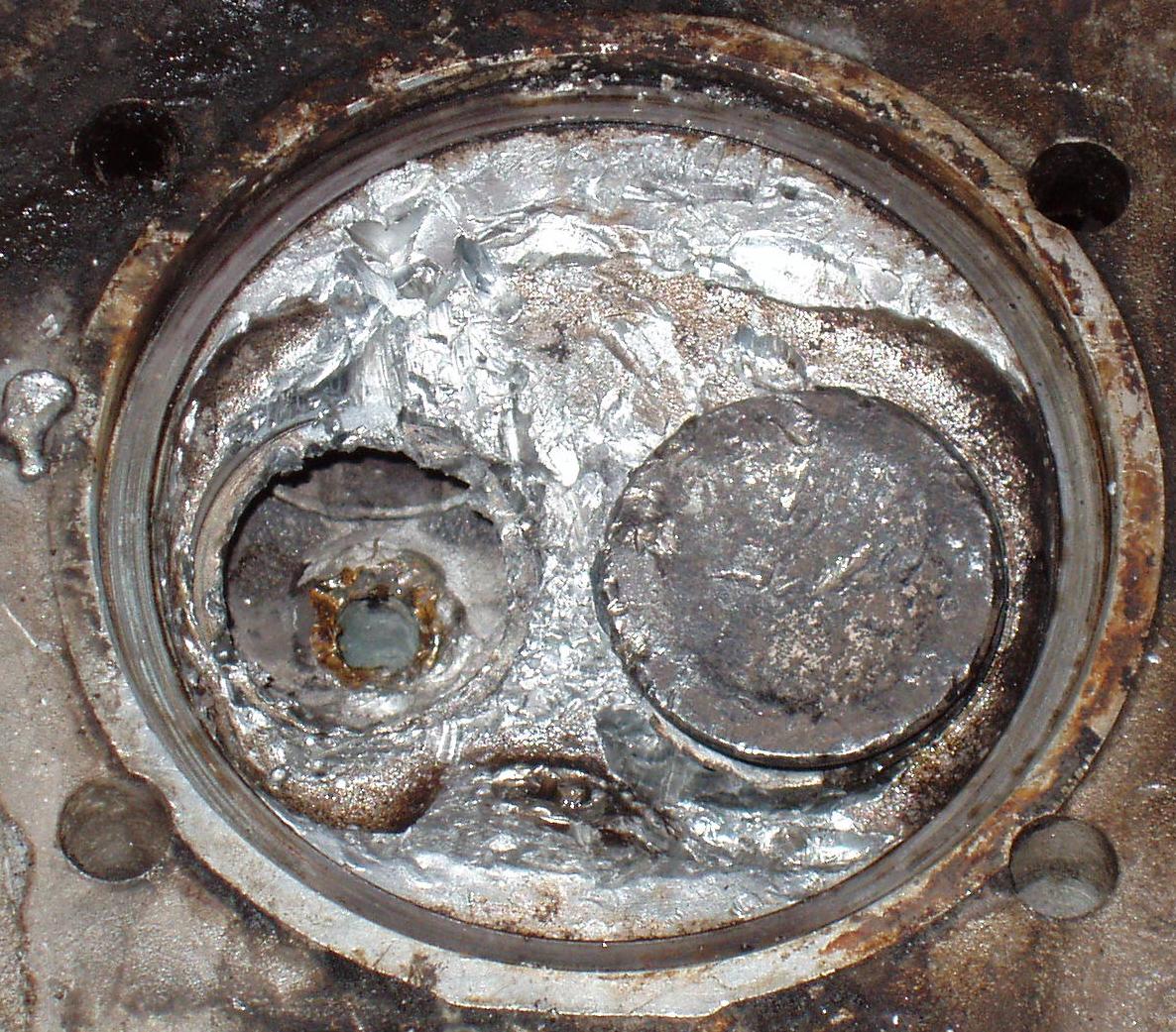 Aber wieso ist der Abdruck so metallisch blank? Sieht doch so aus, als ob das grad eben passiert wäre, ohne daß der Motor seither nochmal gelaufen ist!