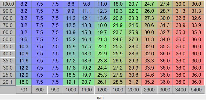 Sprich, bei 5000 Umdrehungen muss der Zündfunke 30,3° vor erreichen des OT erfolgen, damit die Explosion während des OT erfolgt.