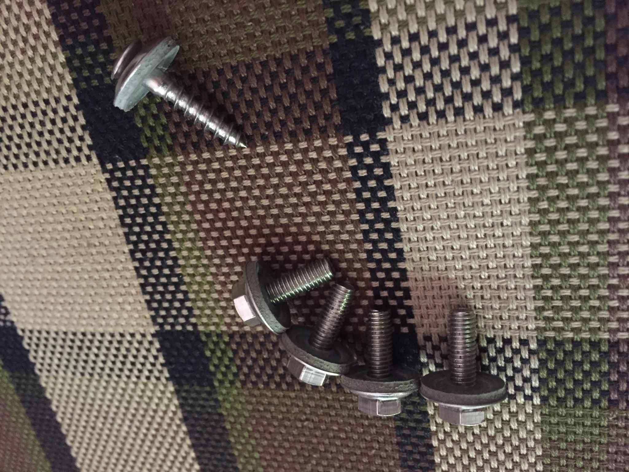 Wir haben hier das Glück, einen Baumarkt "Viohl" mit Schraubentheke und einfallsreichem Mitarbeiter zu haben. Der hat mir acht Sprenglerschrauben verkauft, die eine Scheibe mit Dichtung haben. Die passen wunderbar auf die M5er-Schraube, 16 mm kam, aus Edelstahl. Von oben und von unten je eine Scheibe. Macht n guten Eindruck, ich hoffe, dass es dicht ist (wenn man mal Regen braucht!).