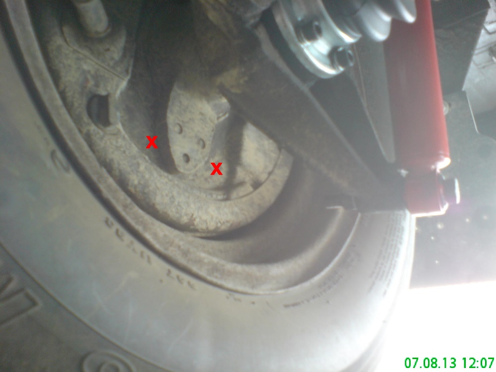 Meine Trommelbremse hat hier aber kein Loch. (Im Foto mit rotem "X" markiert)
