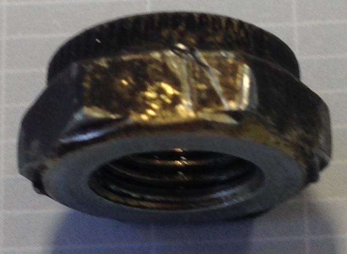 irgendwo rausgefallen und nicht wieder aufgetaucht. War auch nicht schlimm, da die neue Scheibe mit (Feingewinde) Schrauben und Muttern kam.