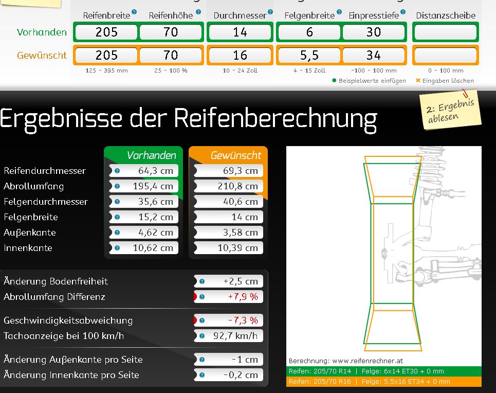 Und dann mal das ganze im Reifenrechner.at verglichen: