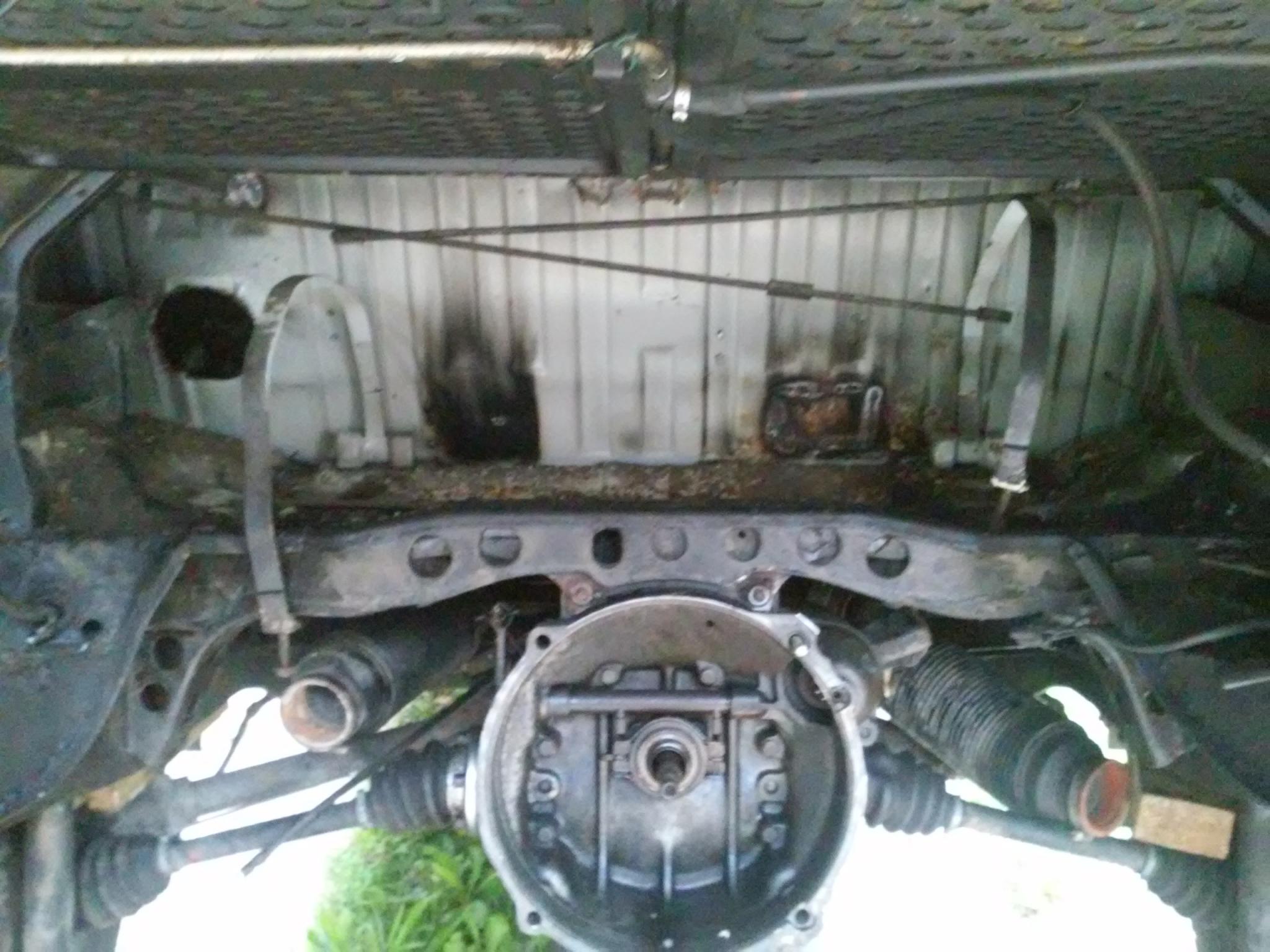 Was da alles geschweisst worden ist, entzieht sich meiner Kenntnis. Jedenfalls war hinten links mal eine Reserveradmulde drin, und vermutlich auch mal eine Standheizung. Ist jedenfalls ein 74er Hochdach mit hoher Schiebetür und Mitteldurchgang.