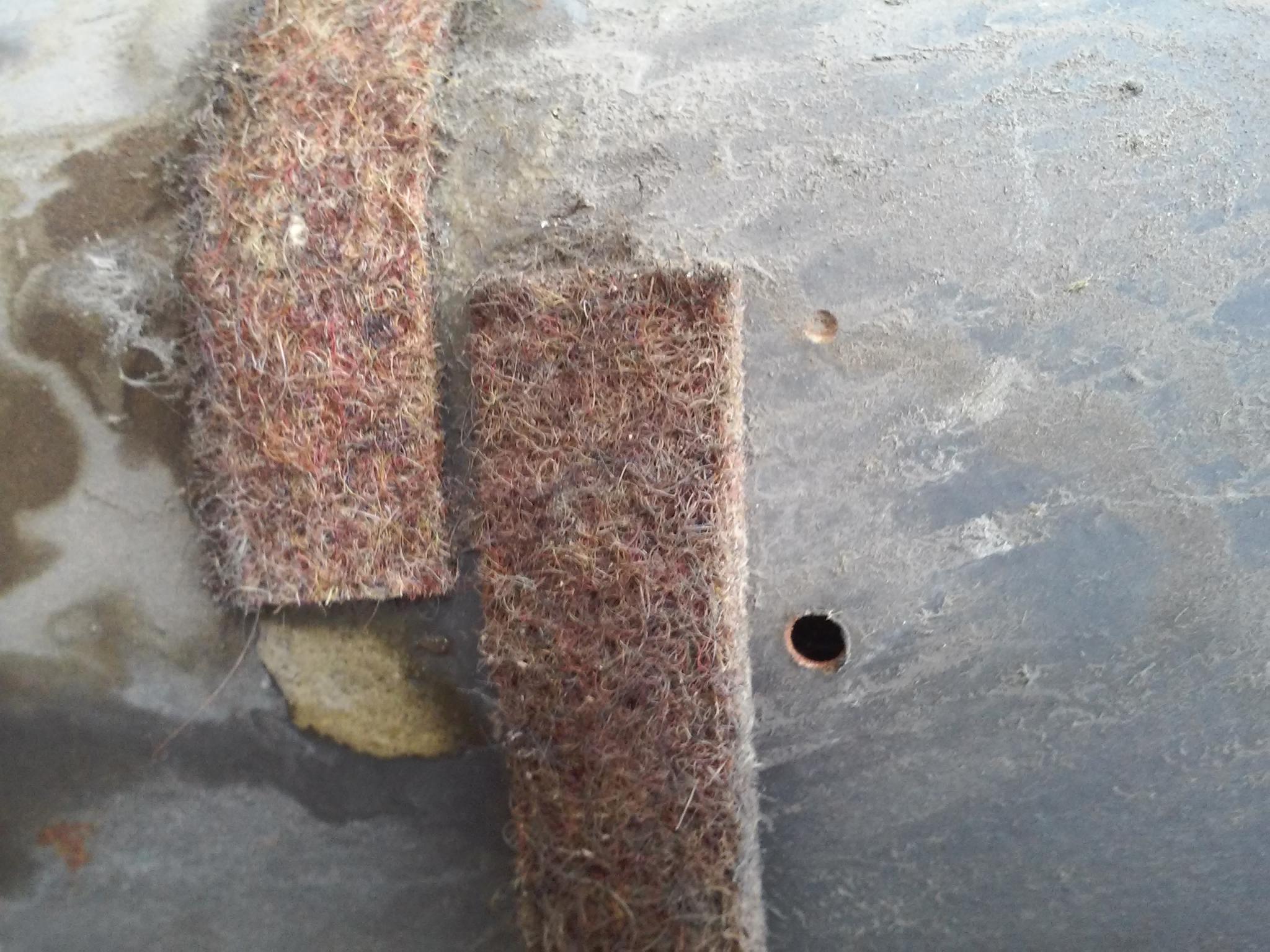 Die Ursache des undichten Tanks: matching holes... Beim Einbau einer Sitzbank wurde einmal zu tief und einmal noch nicht ganz so tief gebohrt.