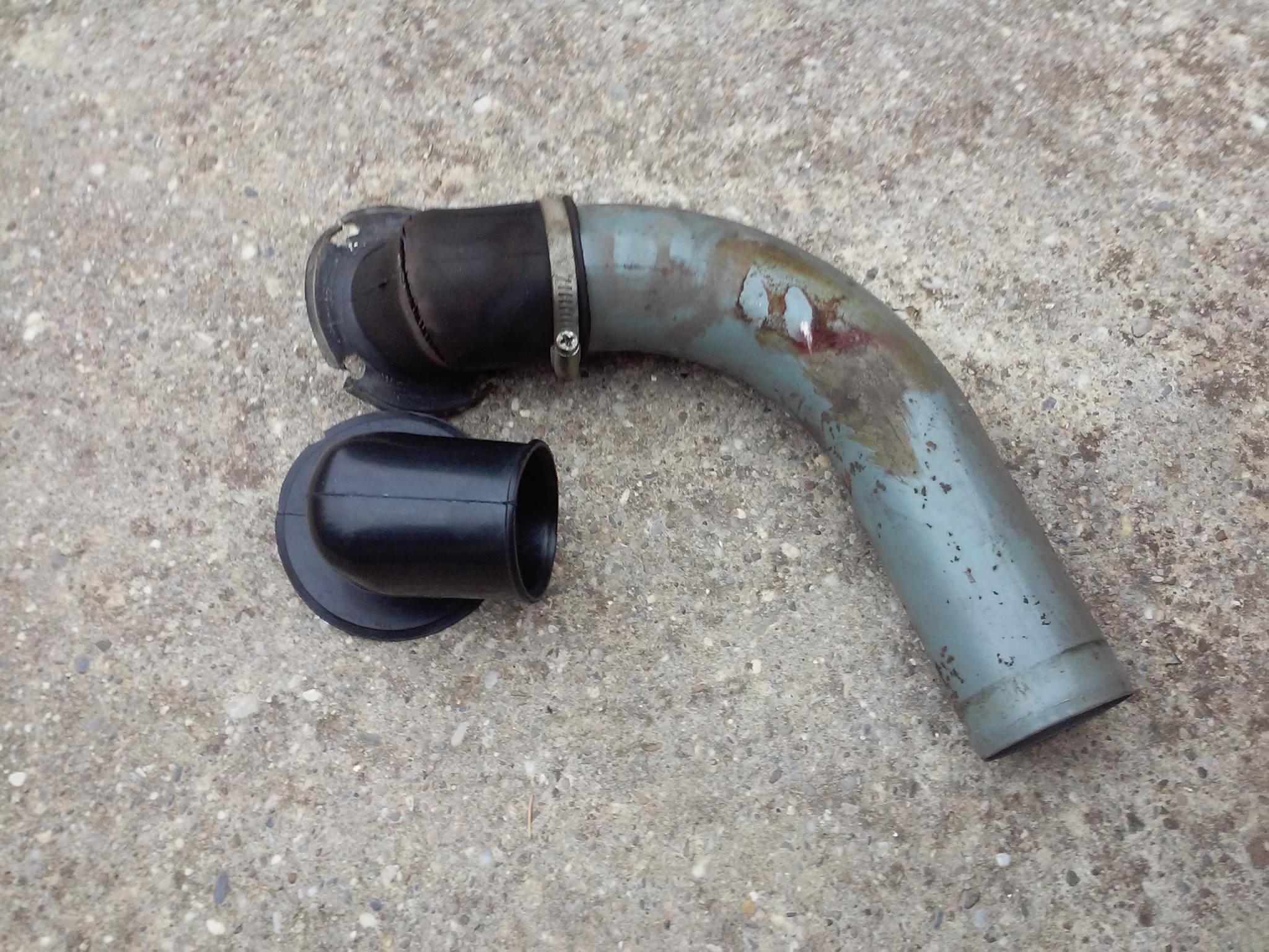 - am besten zu zweit: einer fädelt das Rohr samt Gummiwinkel ein, der zweite stülpt den Wulst vom Gummiwinkel durch das Loch, wo dann der Tankdeckel sitzt (ich gebs zu, ich habs allein gemacht)