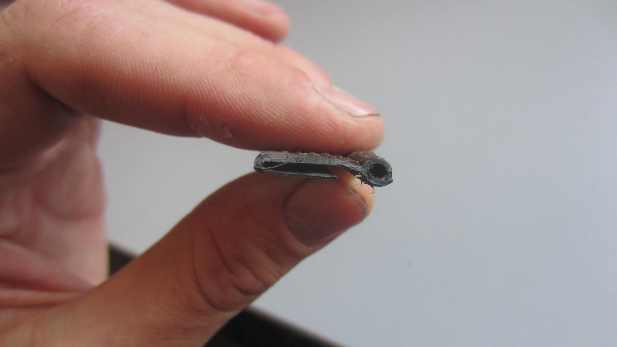 das schwarze an dem Falz ist die Dichtung, die passt da so gut rein, dass ich davon ausgehe dass es original ist.