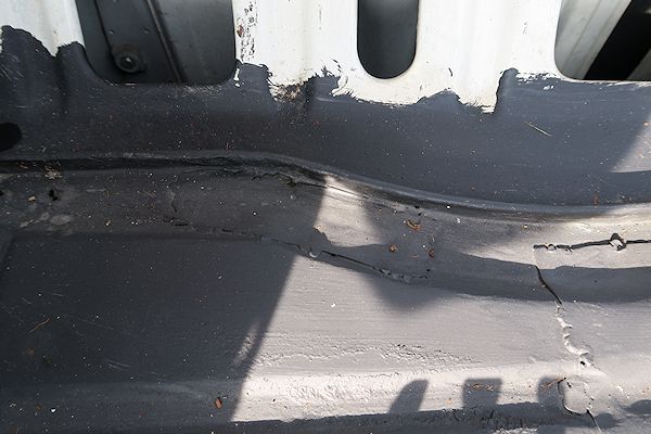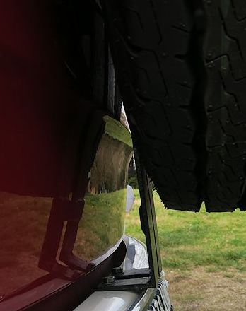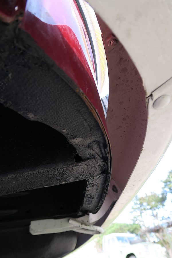 Könnte gut sein, dass die Front unter dem Reserverad gerissen und verbeult ist. In Amerika wird der Halter immer gerne nur am Blech der Maske verschraubt.