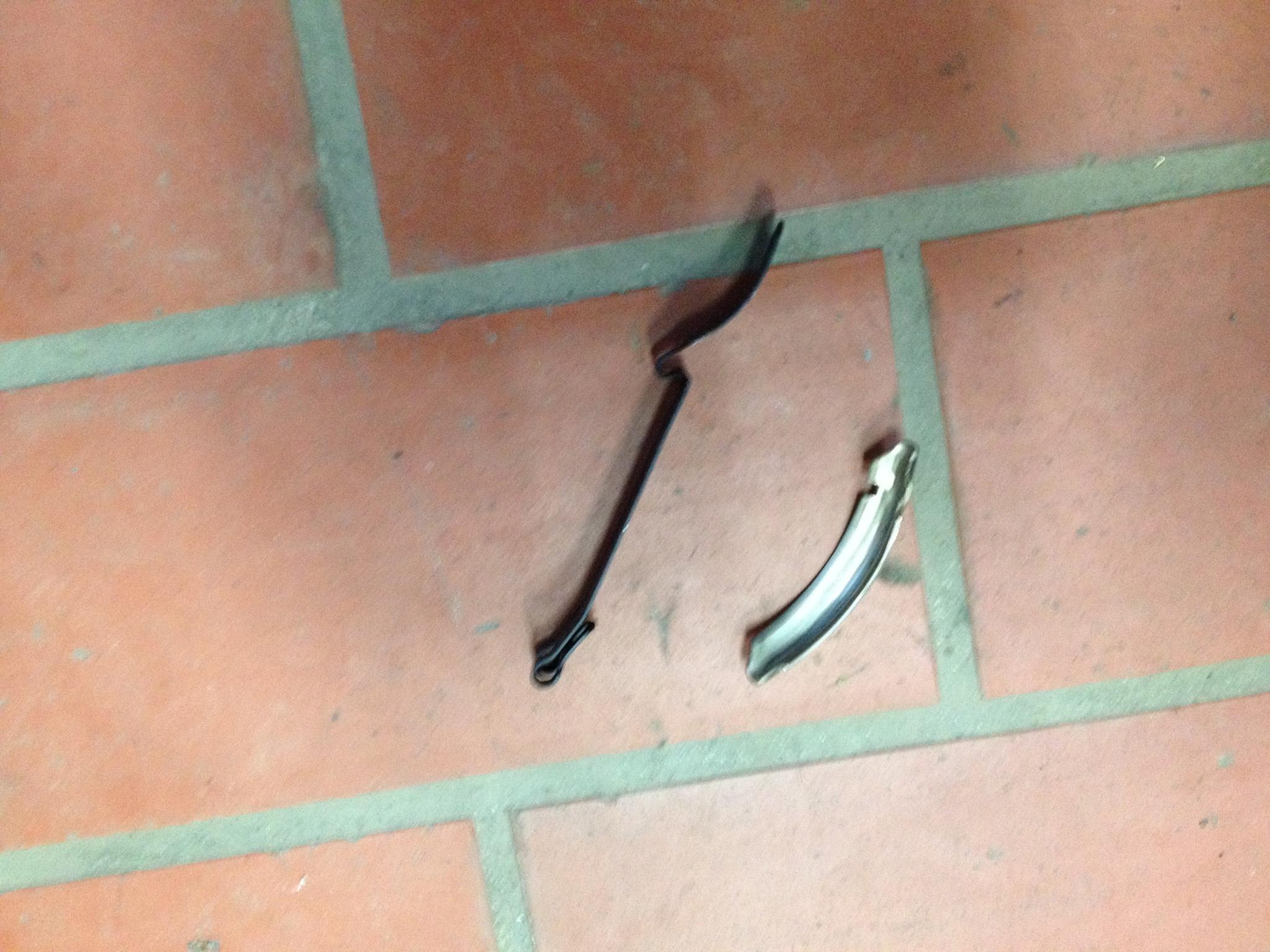 das schwarze sieht aus wie das Spannblech welches den Wagenheber unter dem Beifahrersitz fixiert. Nur etwas gerade. Ist bei mir gebogen.