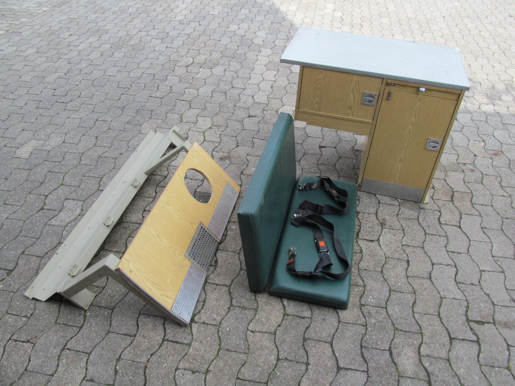 Mein Bus hat hinten nur eine zweier Sitzbank mit Tisch/Schrankkombi verbaut (ex Katastrophenschutz)