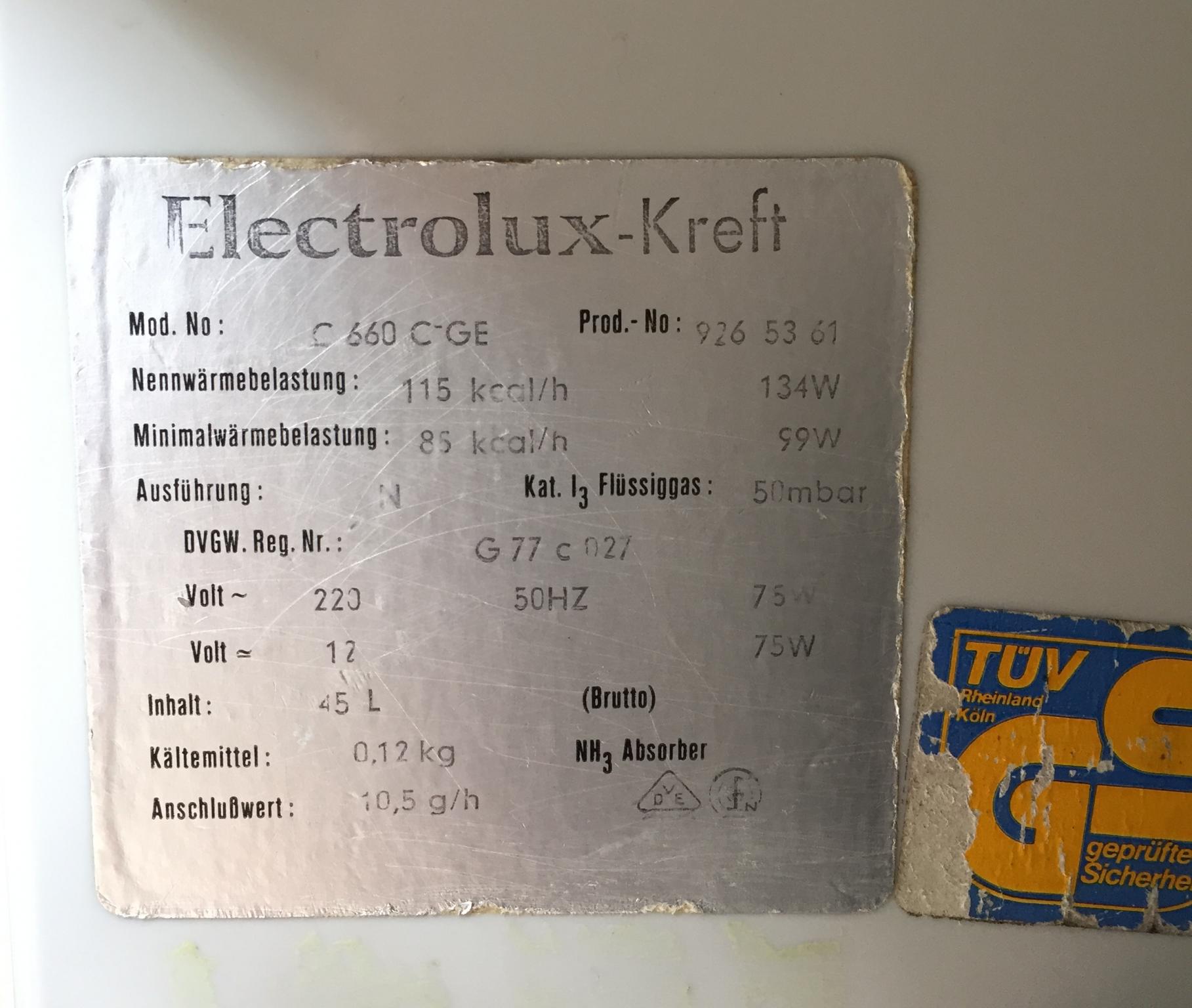 Wie schon in der PN beschrieben handelt es sich um einen Elektrolux mit 12/220V und Gas-Betrieb.