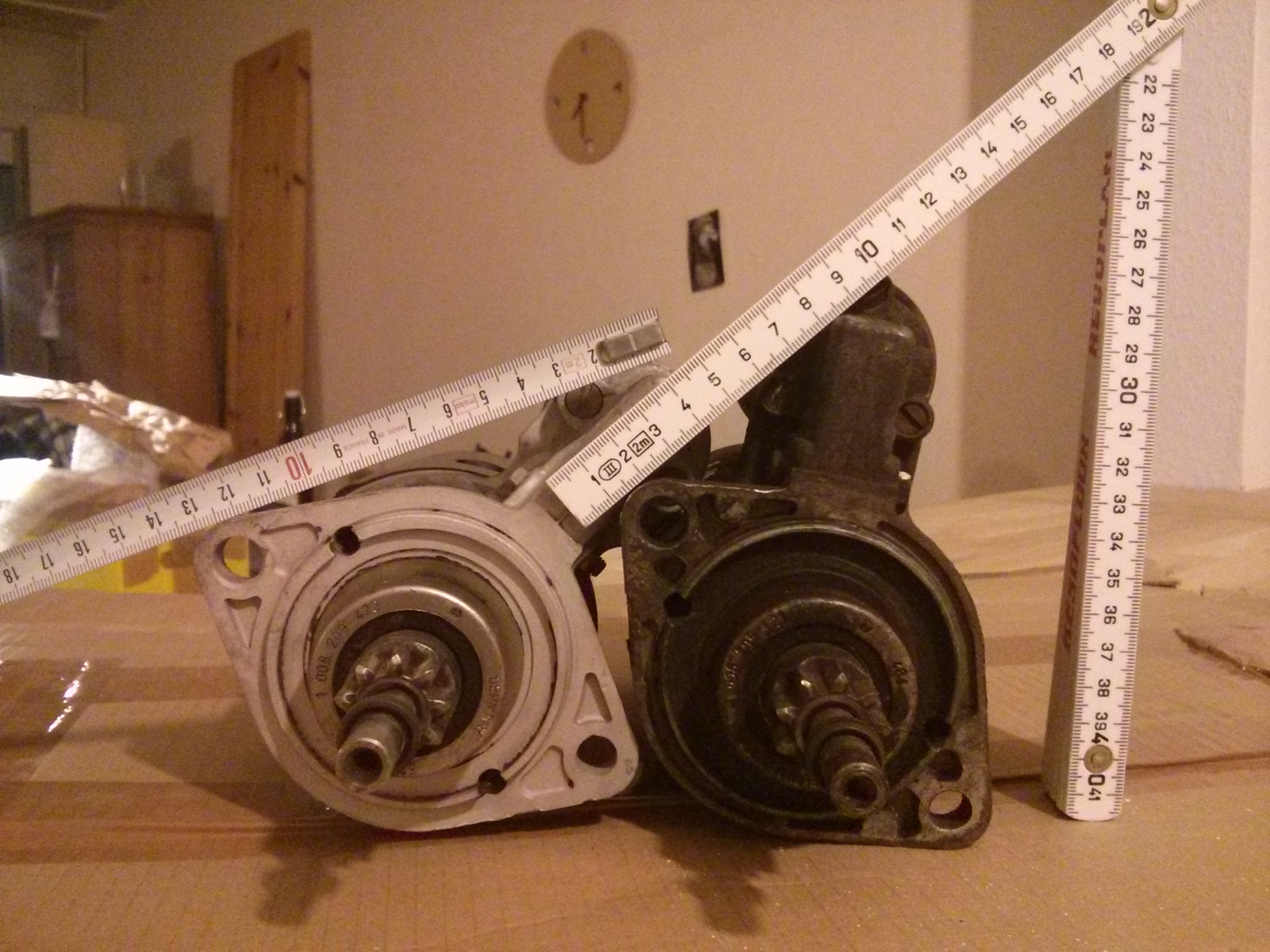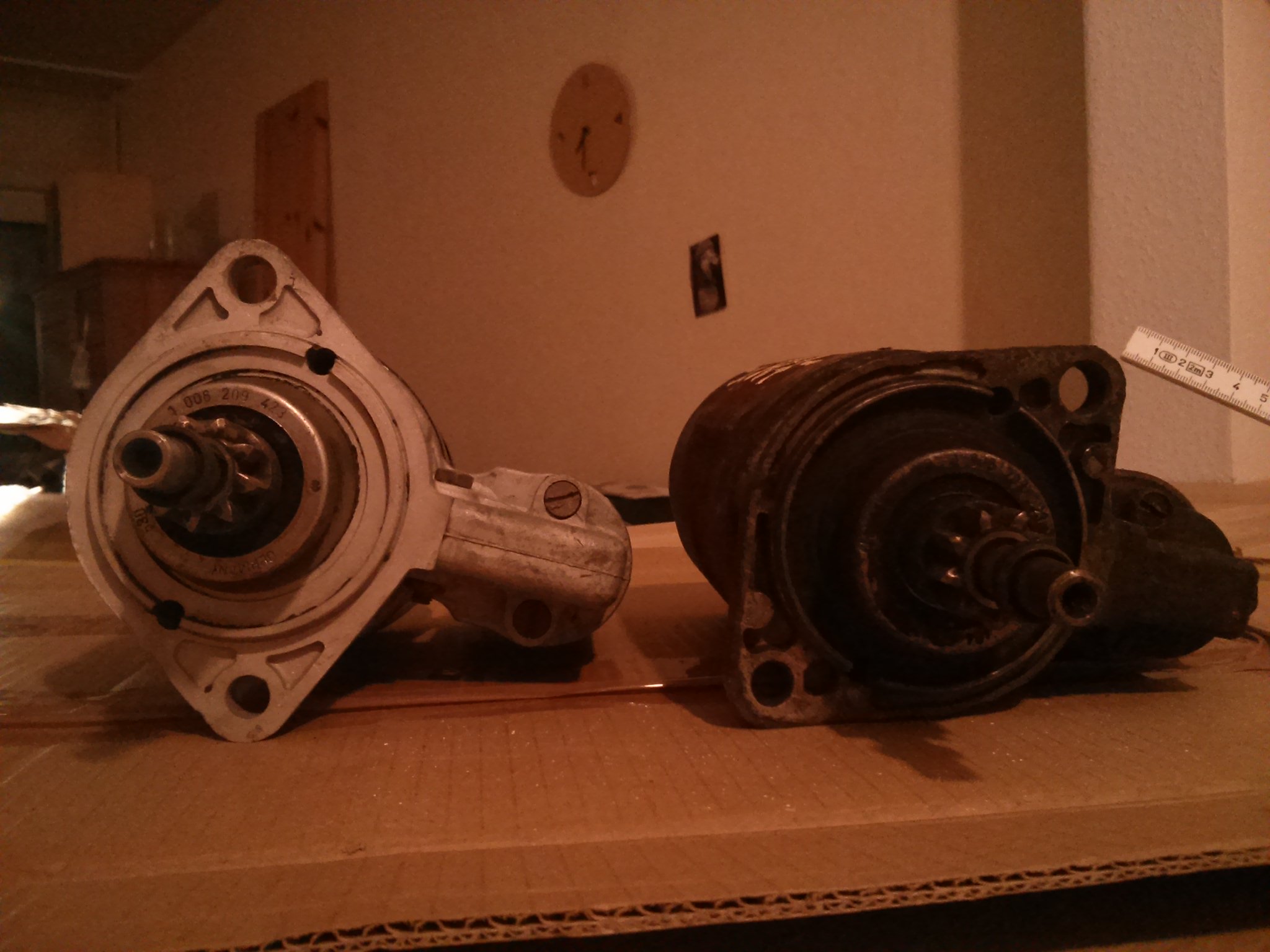 ich hatte bei einer Suchanfrage mal die Frage gestellt, zu welchem VW wohl ein Anlasser mit langem Ritzel gehört, der aber das Gehäuse anders gegossen hat, als am T2. Auf dem Anlasser stand sehr deutlich VW T2. Daher hatte ich ihn gekauft, passt aber nicht. Ich wollte das Innenleben in ein anderes Gahäuse bauen, aber erst, wenn ich weiß, dass der Anlasser nicht woanders dringend gesucht wird. Den richtigen habe ich ja inzwischen auch gefunden. Hat etwas länger gedauert, bis ich wieder zur Garage gekommen bin.