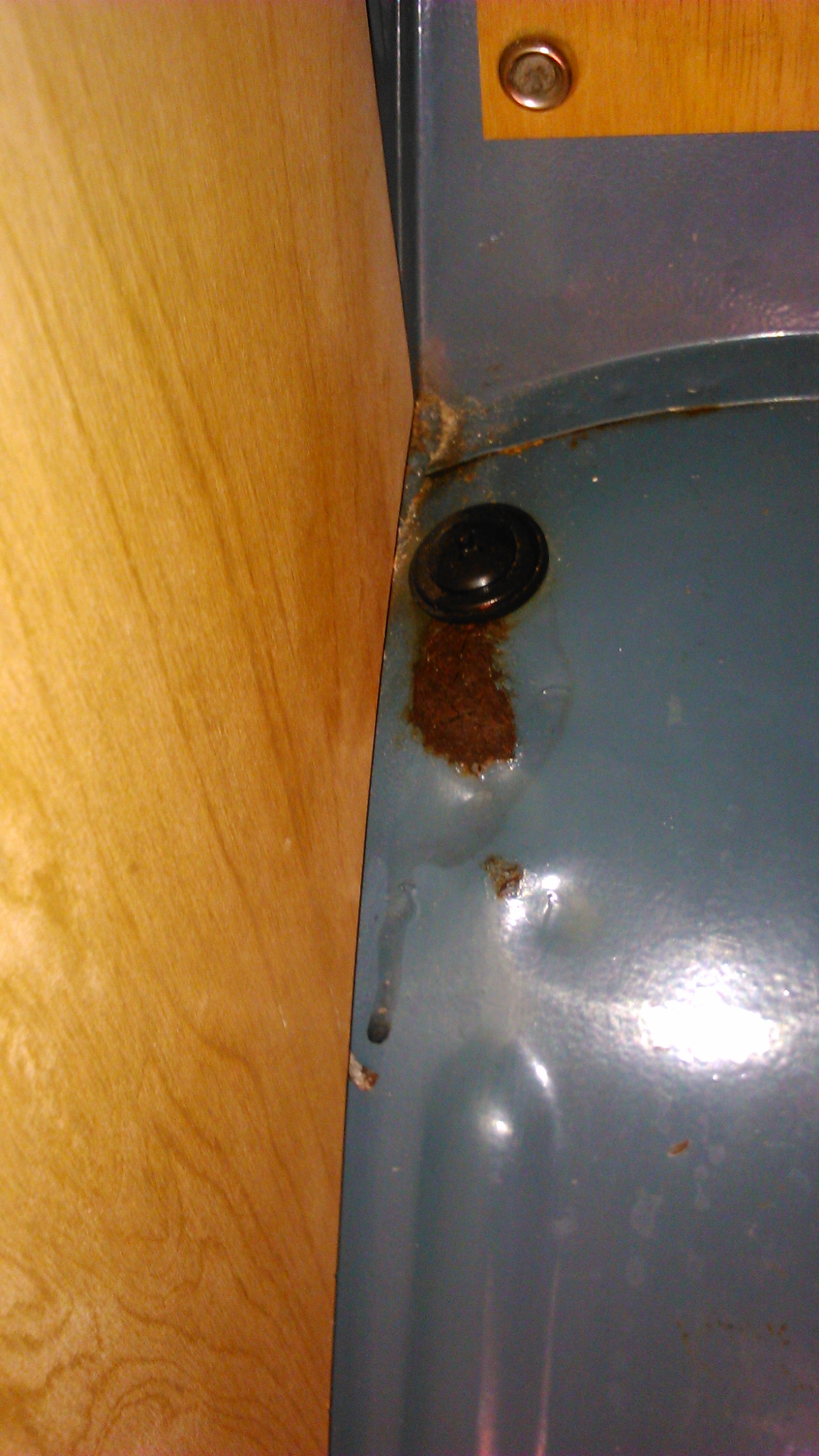 Mein Vorschlag: Die Ritzen am Verstärkungsblech mit Owatrol tränken und nach der Trocknung mit transparentem Wachs zuschmieren, so dass kein Wasser mehr durchkommen kann.