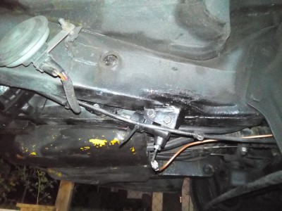 Den original Hebel habe ich mit einem Winkel nach unten hin verlängert, als Geberzylinder dient einer vom VW T4.