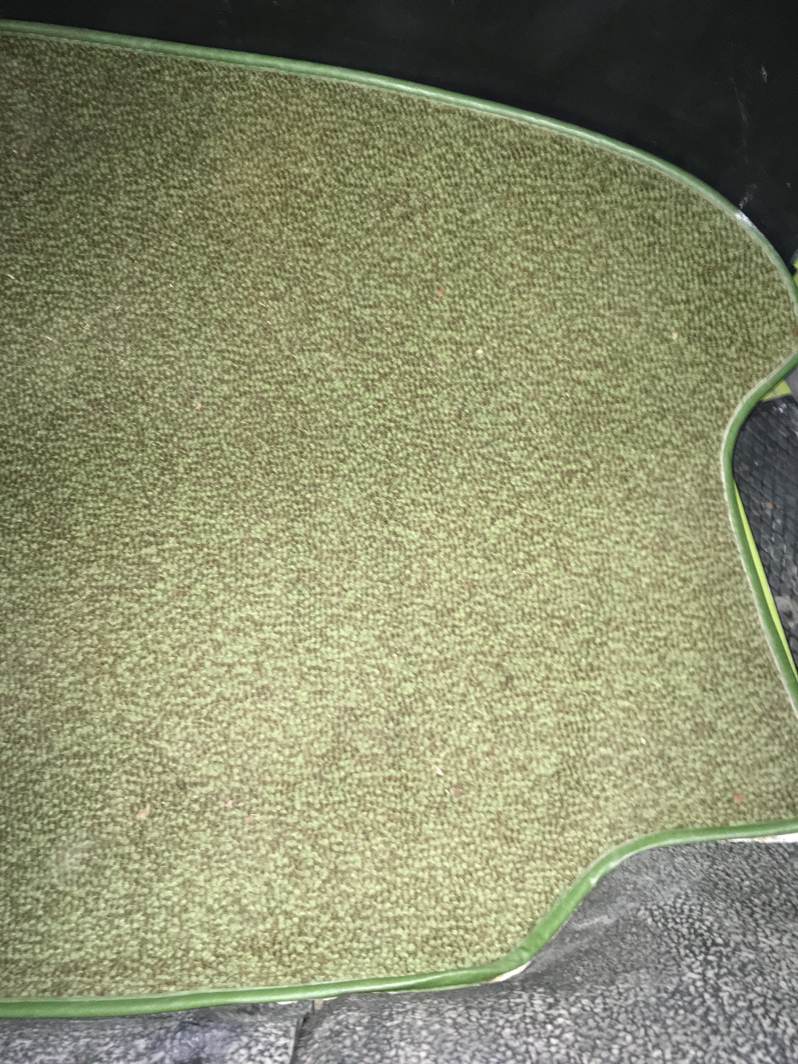 Nachdem ich die Probe zuerst mit dem kleinen Stück Teppich für den Mitteldurchgang gemacht habe und der wieder sehr schön geworden ist, kam heute der von der Fahrerkabine dran. Zuerst wurde der lose Schmutz herausgeklopft. Unglaublich, was da herausrieselte hätte für die Füllung eines Kindersandkastens gereicht. Danach wurde der Teppich mit heißem Wasser abgeduscht. Jetzt kamen Bürste und Haarschampoo zum Einsatz. Ordentlich gebürstet und mit viel klarem Wasser nachgespült wurde er im Schatten zum Trocknen aufgehängt. Mit einer Nagelschere habe ich vorsichtig die herausgezogenen Fäden an den Schnittkanten für die Pedale abgeschnitten. Als der Teppich ganz getrocknet war, habe ich die Rückseite an den gefährlichen Stellen um die Ausschnitte und an den schon brüchigen Stellen mit Sockstop getränkt. Von vorne ist da überhaupt nichts zu sehen. Klar, rückseitig ist er nicht mehr so schön wie neu, aber wer betrachtet schon ständig die Unterseite? Alle Kanten sind bombenfest und an den Stellen, wo die Gummibeschichtung durchgescheuert oder brüchig war, ist jetzt eine gute Schicht Latex drauf. Mal sehen, vielleicht begleitet mich das gute Stück doch noch ein paar Jährchen.