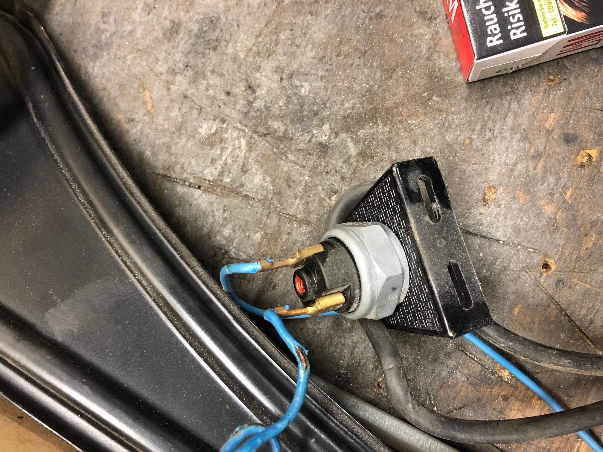 Das ist ein Druckschalter; da hat sich offenbar ein Vorbesitzer eine Warnlampe eingebaut, damit er nicht unter 0,1 bar Druck auf der Wischeranlage hat :D