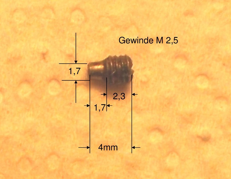 Wie die Madenschraube denn genau aussieht, müsste ich morgen einmal nachschauen. Vielleicht gelingt es mir auch das Schraubenmaß zu bestimmen, es ist jedenfalls weniger als M3, soweit meine Erinnerung.