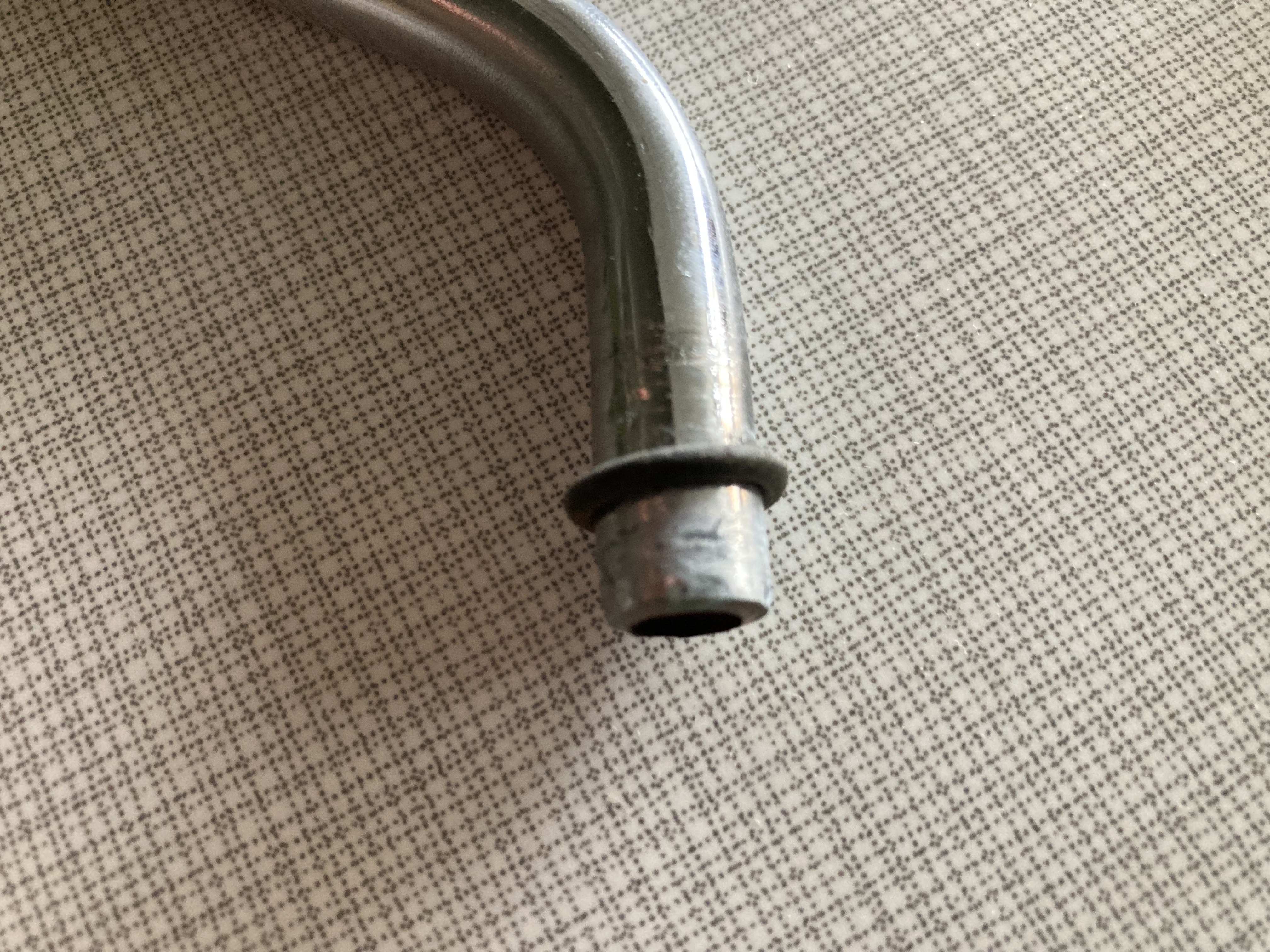 2. Ich habe im Baumarkt ein Ersatzrohr aus Kupfer verchromt gefunden. Allerdings hat es 10mm Aussendurchmesser. Das originale hat weniger: ich vermute 3/8 Zoll.