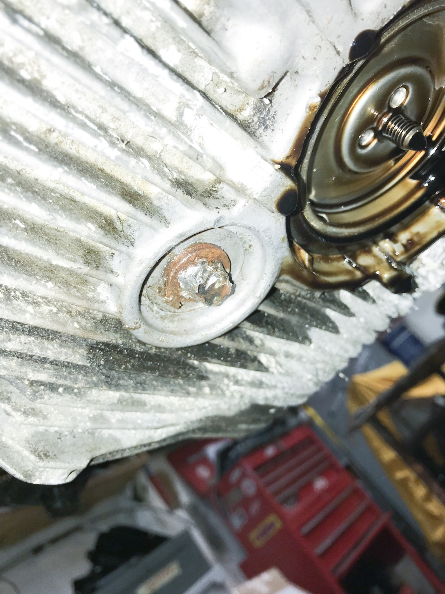 ......lass den motor richtig warmlaufen bevor du versuchst die schraube zu lösen ( nach dem schweissen) ...das hilft meistens.