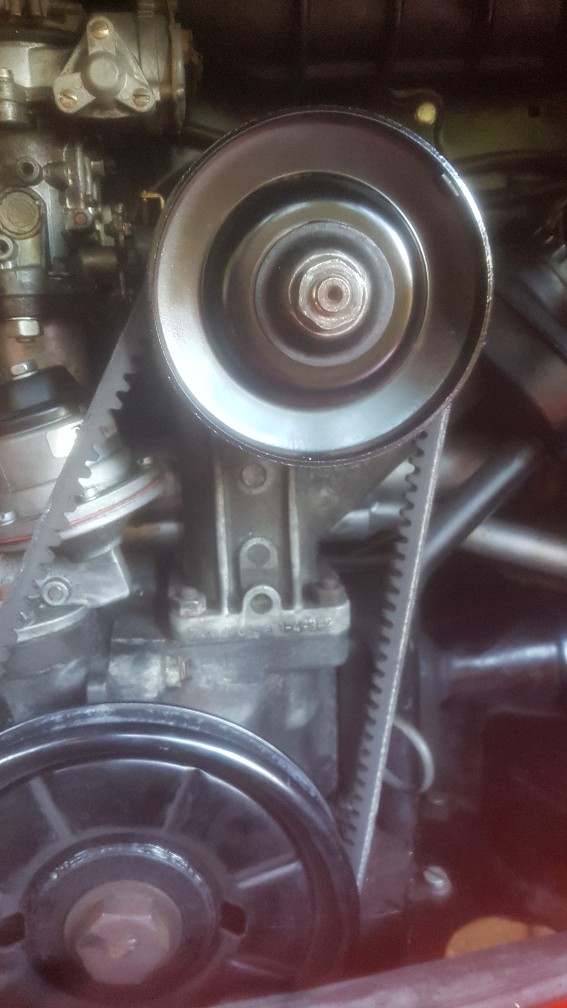 Der Bus wurde im Jahr 2011 aus den Staaten reimportiert und bei VW Oldtimer in Hannover grundlegend saniert. Ich glaube kaum das die den mit so einem lockeren Riemen ausgeliefert haben. Der Riemen der drin war, ist einer ohne Zähne und wohl aus Keflar. Allerdings etwas länger als der nun zur Probe verbaute von Bosch.