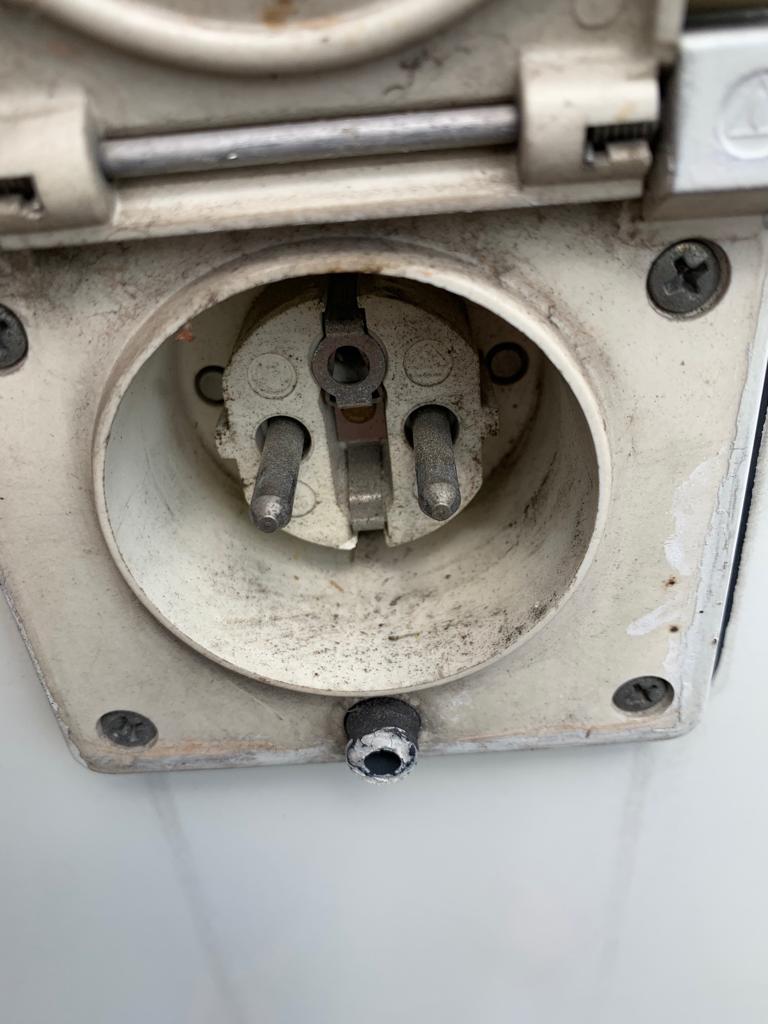 Da im Bus kein Fehlerstromschutzschalter verbaut ist habe ich mir ein „PRCD-S“ Kabel besorgt (gebraucht ersteigert). Die Kupplung war zu dick für den Aussenstecker am Bulli, musste ich dann noch gegen eine kleinere austauschen.