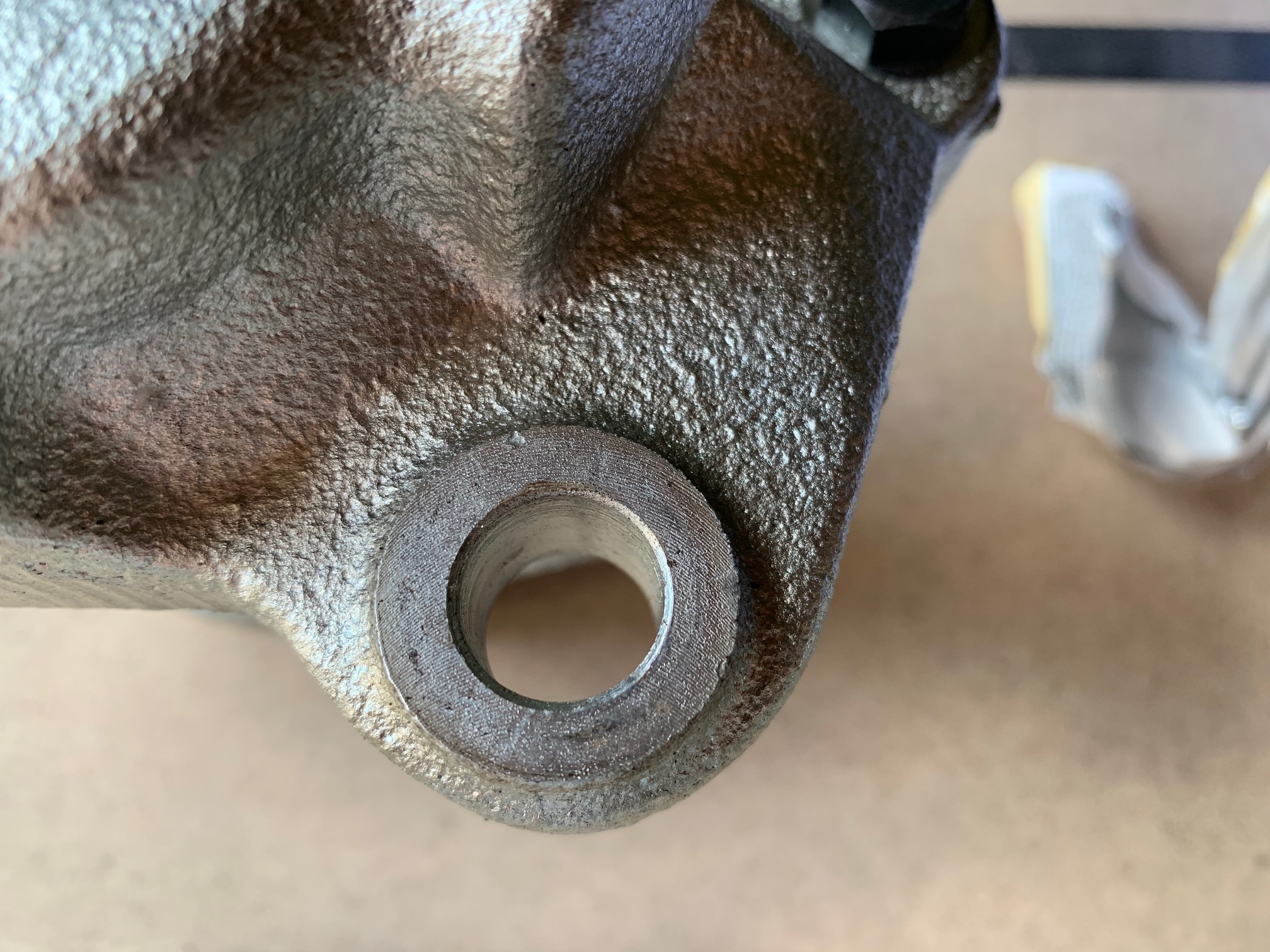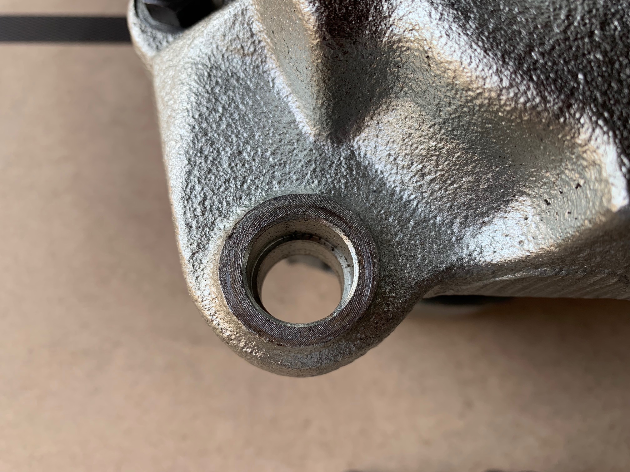 Nun hab ich mir wohl oder übel zwei neue Sättel geholt und wollt die jetzt montieren. Dabei hab ich gesehen, dass jeweils eine Schraubenaufnahme zur Befestigung am Achsschenkel so einen Absatz im Schraubenloch hat. Die Schrauben zur Befestigung haben unterschiedliche Schlüsselweiten (19 + 22), sind beide M14 und haben beide ein durchgehendes Gewinde vom Scheitel bis zur Sohle.