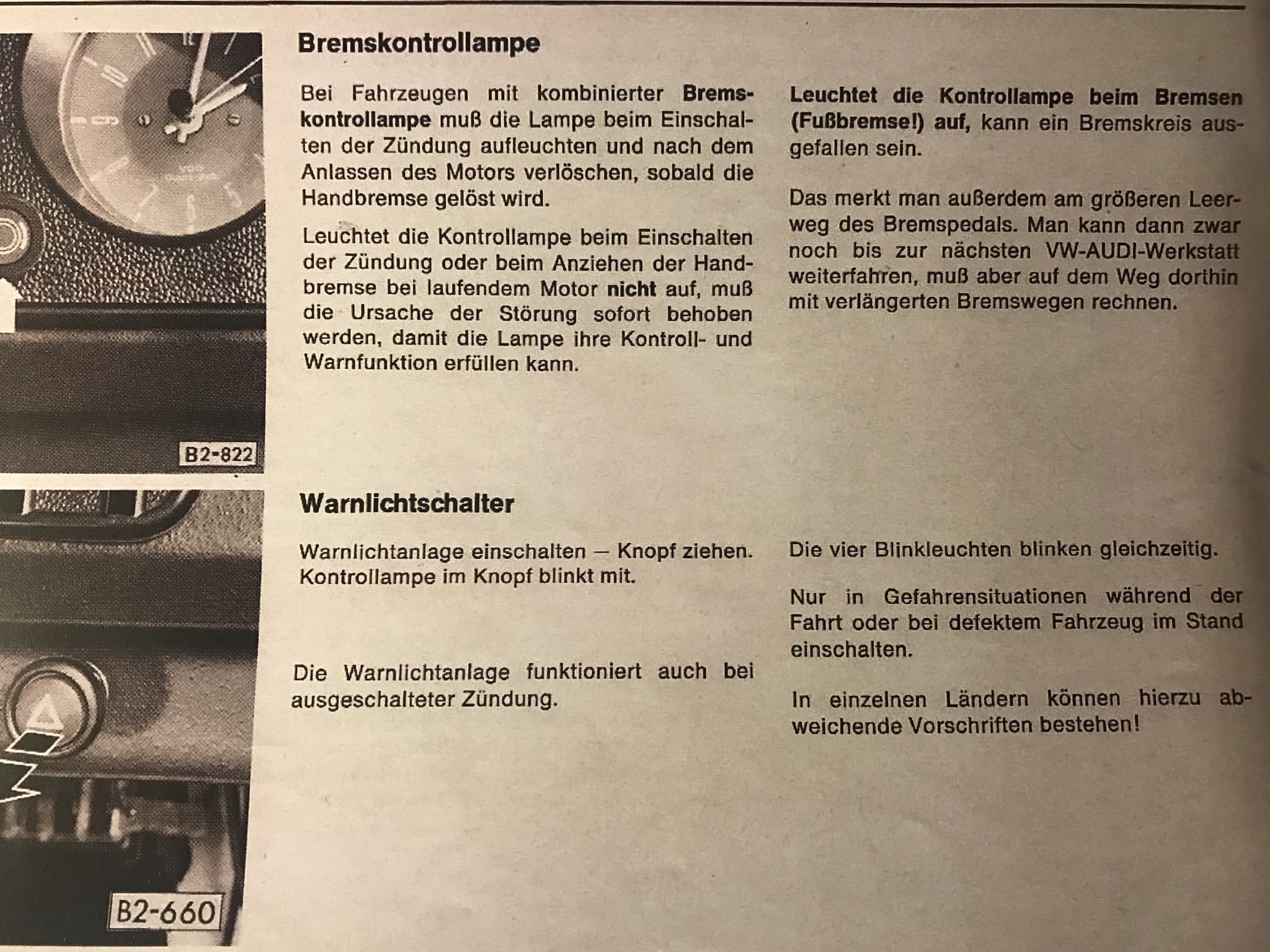 wobei die Funktion als Handbremskontrolle leider nicht bei allen Fahrzeugen verbaut ist. Hauptsächlich US und Export hatten diese Feature.