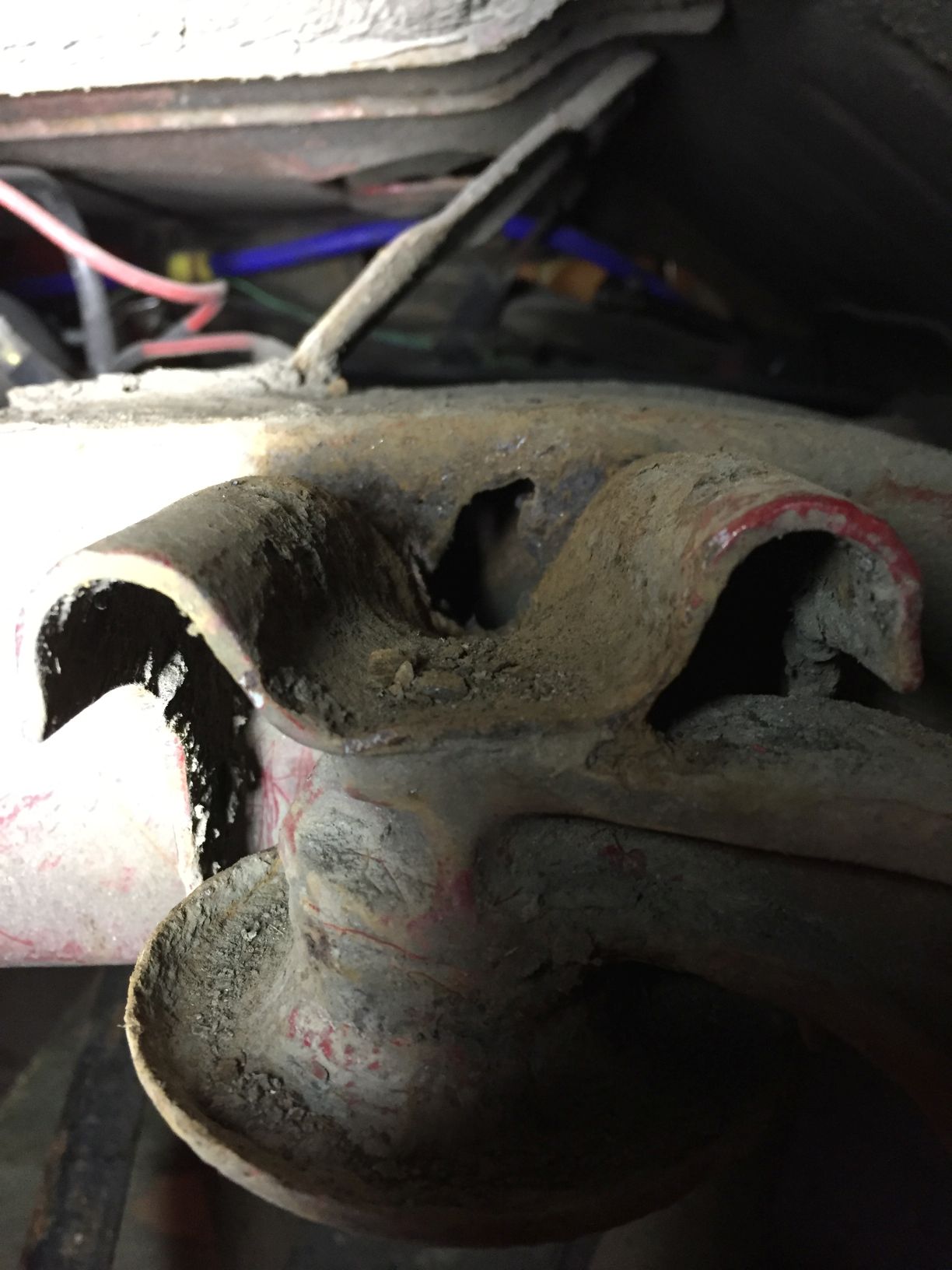 eigentlich wollte ich "nur" den Dreck wegmachen, um den Rephalter für den Anschlagpuffer an der Hinterachse montieren zu können und dann die böse Überraschung: uner dem Dreck ein Loch im Längsträger und der angeschweißte Halter selber auch noch gelocht.