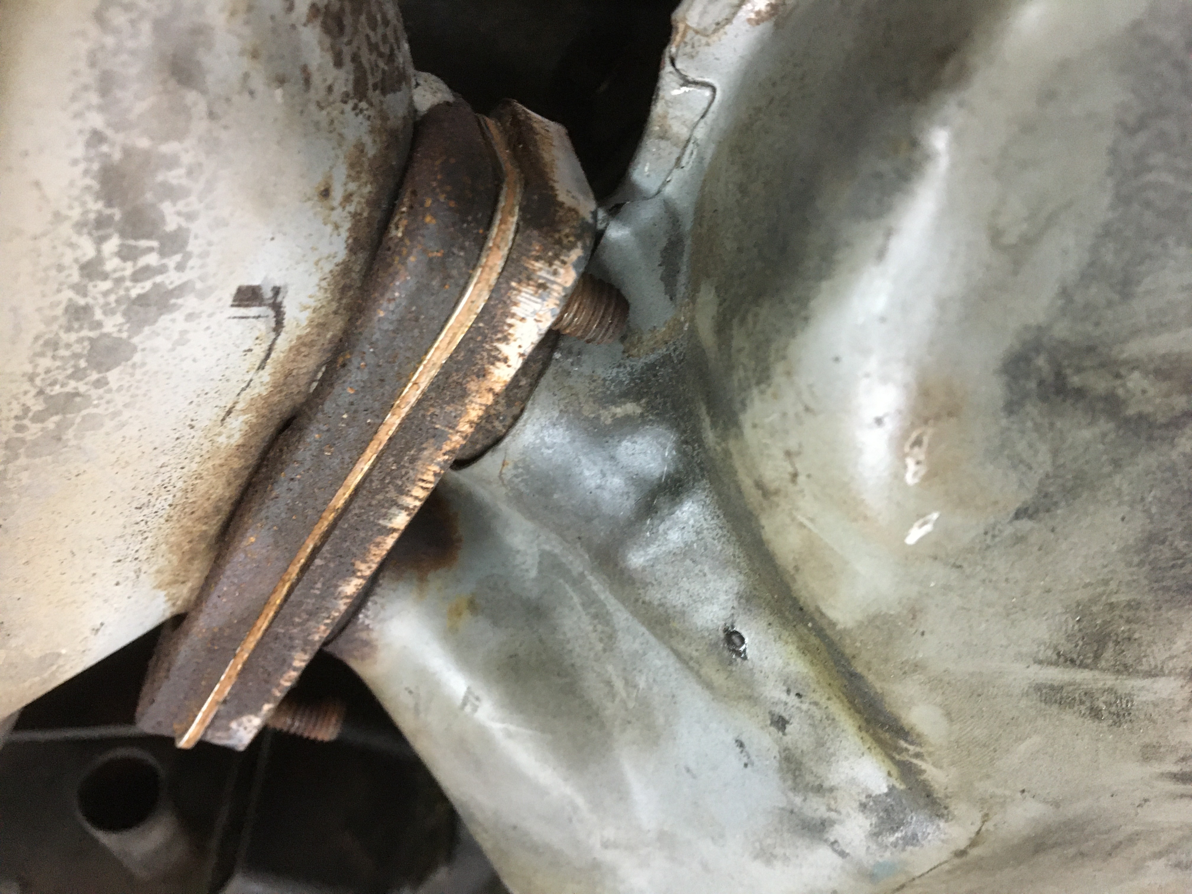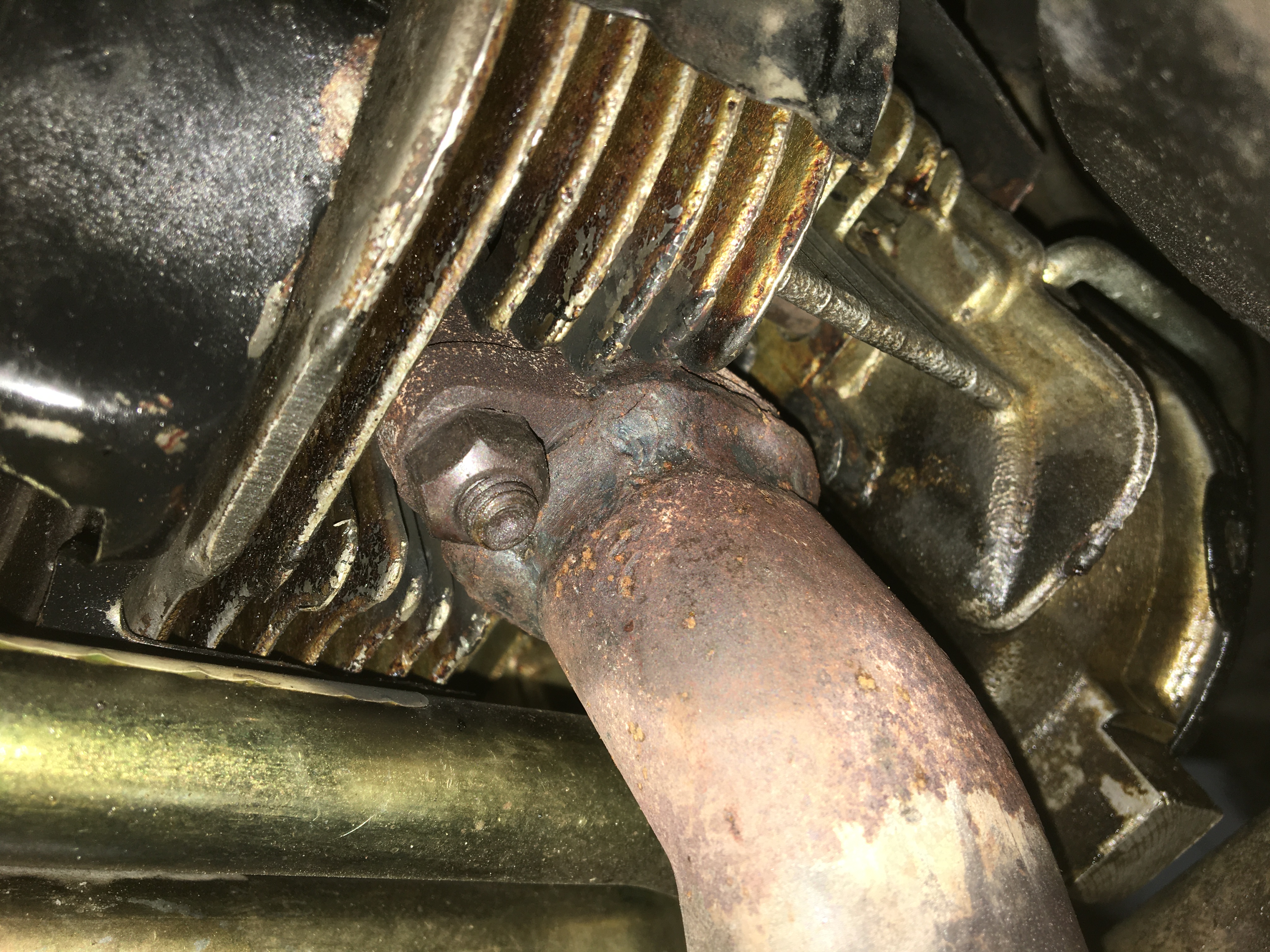 Ich bin mir nicht ganz sicher ob ich den jetzt auch noch runterschrauben soll, aber wenn schon der Auspuff herunten ist, ist dass ja eigentlich schnell gemacht.